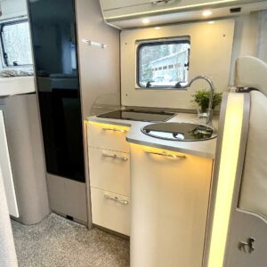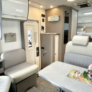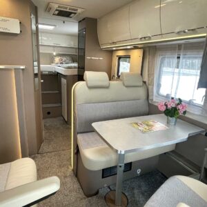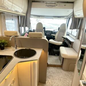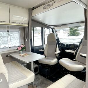 Auton etuosassa on etupenkit kääntäen väljä istuinryhmä viidelle ja keskiosasta löytyy keittiö, missä on korkea jääkaappi sekä säilytystilaa lusikkalaatikolneen. Takaosassa sijaitsee ylellinen WC/suihku yhdistelmä ja erillisvuoteinen makuuhuone sekä runsaasti kaappitilaa. Toinen vuode sijaitsee ohjaamon päällä ja se jättää alas laskettunakin istuinryhmän lähes vapaaksi.