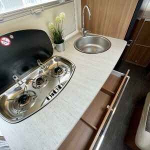 Tällä autolla lähdet ruskareissuun tai vaikka Norjan tunturiin. Kaksoispohja ja tehokas Truma ilmapuhalluslämmitin pitävät varpaat lämpiminä ja laskettelutakit kuivina. Suurikokoiseen takatalliin mahtuu kaikki Jorman-erävehkeet. Nukkuminen mahdollistuu tilavassa alkovissa tai poikittaisessa takavuoteessa, toki tilavasta ruokapöydästäkin saa tarvittaessa lisävuoteen. Kuudelle rekisteröitynä ei seurueen tarvitse olla pieni.