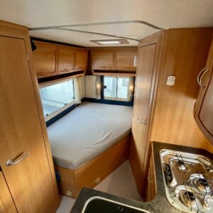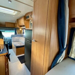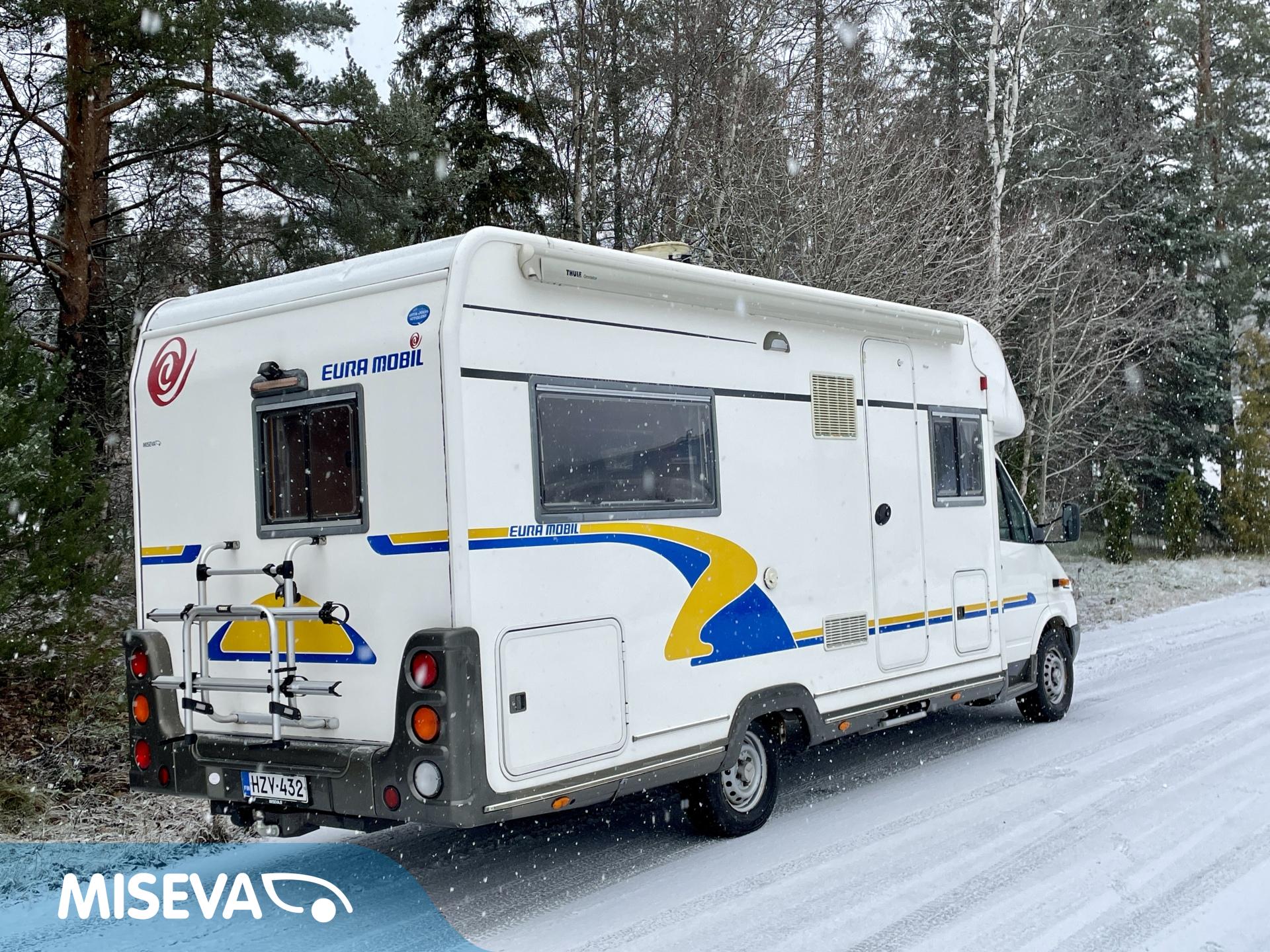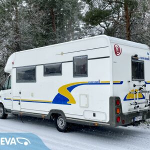 Mersu-alustainen takavetoinen ja isolla koneella. Takana ranskalainen parivuode ja vieressä tilava pesuhuone, keskellä keittiö isolla jääkaapilla, edessä pöytäryhmä 4:lle josta toisesta tehtävissä