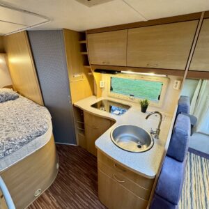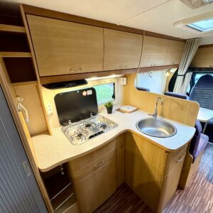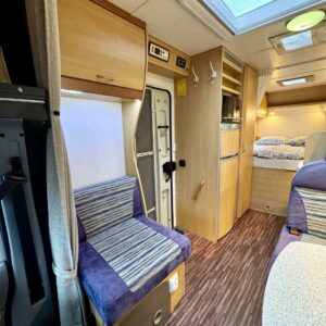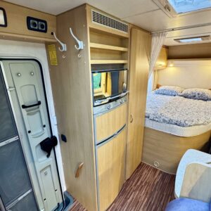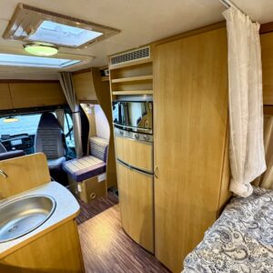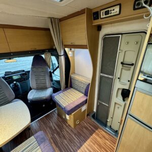 Saksalaisen Eura Mobilin valmistama puoli-integroitu matkailuauto ihan mukavilla varusteilla. Auton takaosaan on sijoitettu parivuode pitkittäin ja sen vieressä on WC/kylpyhuonetilat. Suihkulle on oma erillinen tilansa. Keskeltä löytyy L-keittiö ja säilytystiloja. Keittiövarusteina mm. iso jääkaappi erillisellä pakastinlokerolla, kaasu-uuni, sekä liesituuletin. Etuosaa hallitsee pöytäryhmä minne yhdistyvät kääntyvät ohjaamonpenkit, sekä erillinen sivupenkki. Vetokoukku, markiisi, sekä pyörätelinekin löytyy jo valmiiksi asennettuna. Lämmitysjärjestelmänä tehokkain (6kw) Trumaticin ilmakeskuslämmitys ja sähköpatruunalla varustettuna.