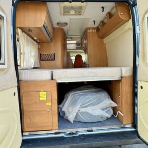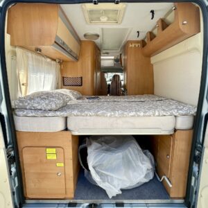 Peräpäästä löytyy parivuode ja tilava tavaratila johon on pääsy niin auton sisä- kuin ulkopuolelta.
