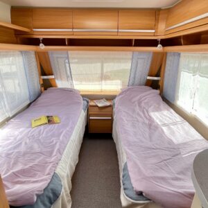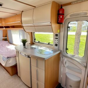 Erillisvuoteet, Kasettiverhot, Kasetti WC, Jääkaappi, Kattoluukku, Ilmastointi: Automaattinen, Lämminvesiboileri, Markiisi, Pesuallas, Pakastelokero, Tukijalat, Trumatic, Lattialämmitys, Sähköpatruuna, Suihku