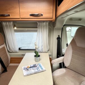 Tämän retkiksen värimaailma on mietitty mukavaksi ja tylikkääksi kokonaisuudeksi. Ja kun sivuoven laittaa kiinni, huomaa heti automaattisen ovensulkijan. Tämän retkiksen sivuovea, ei tarvitse siis paiskoa. Sisätiloista löytyy myös muutama säilytykseen liittyvä loistava ratkaisu. Säilytystilat retkiksissä on kompromissi yleisesti tilojen suhteen. Joten jokainen ylimääräinen kolo tai laskutila on aina tervetullut. Keittiössä laskutilaa on saatu kätevällä lisäpöydällä ja ruokailutilan jalkatilassa on kaksi kätevää säilytyslaatikkoa. Auton keskeltä löytyy suihku ja wc-tila. Ja tässä retkiksessä suihkuttelut onnistuu myös ikkunan kautta ulkona. Takana on poikittainen parisänky ja kaapit säilytystä varten, vaikkapa vaatteille. Tässä mallissa lisätilaa saadaan myös sängyn ja keittiön välisellä kaapilla. Ihan kiva extra. Keittiössä on käytössä kätevät vetolaatikostot ja sivuovi avaa maailman kokkailuun maisemien muodossa. Hyttysverkkohan löytyy myös. Tule tutustumaan Globecariin ja lähde pihalta kohti unelmiesi reissua!
