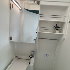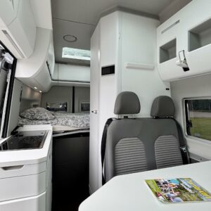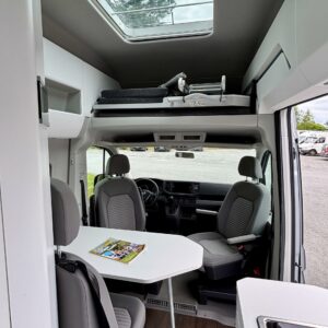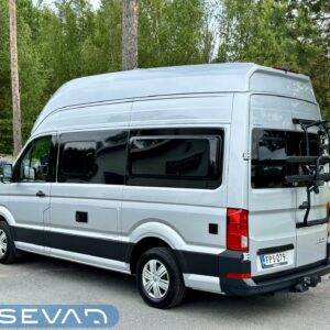 Volkkareissa ajomukavuus on ihan omalla tasollaan. Ja niin on tässäkin Crafterin alustalle rakennetussa Grand Californiassa. Sisätilat on tyylikkäämpääkin tyylikkäämmät ja muuntautuu neljän hengen matkustus tilaksi helposti. Takaa löytyy poikittainen parisänky mihin mahtuu 183 senttinen körmy hyvin köllöttelemään pitkittäin. Keittiö on kompakti, mutta toiminnaltaan hienosti suunniteltu. Jääkaappi on ulos vedettävä ja kylmätila avautuu keittiökokonaisuuden sivulta. Helpottaa esimerkiksi kauppareissulla käymistä, kun ostokset saa suoraan kylmään auton ovelta. WC-/ suihkutila on saatu todella avaraksi kokoonsa nähden. Taitettava lavuaari on kätevä keksintö retkiksen spa-osastolla. Kuljettajan ja matkustajan penkit ovat mallia kääntyvät ja ruokailupöydän ympärille mahtuu helposti neljän hengen seurue. Auton korkeuden ansiosta Grand Californiaan on saatu isojen kaapistojen lisäksi mahdutettua sänky kahdelle, ohjaamon ylle. Jos haet autoa neljälle, jolla matkustaa maailman ääriin tyylikkäästi ja mukavasti, niin tämä on juuri sinulle tarkoitettu!