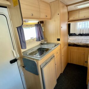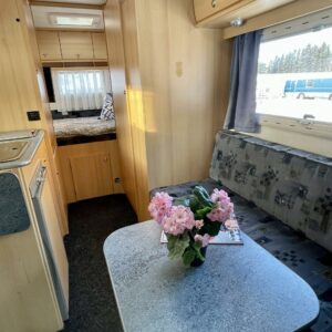 Auton takaosassa on poikittainen parivuode ja läpilastattava takatalli. Etuosasta löytyy pöytäryhmä pitkittäissohvalla. Pesuhuone/ WC ja keittiösaareke sijaitsevat auton keskivaiheilla.