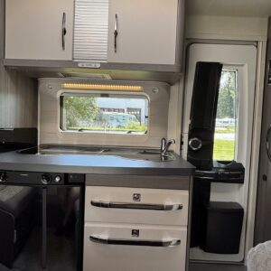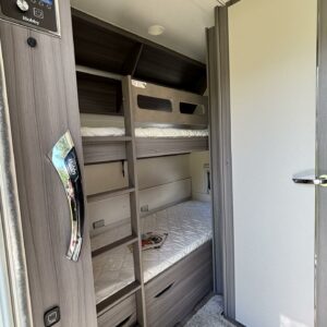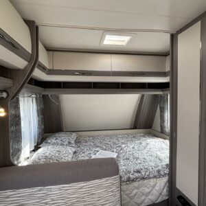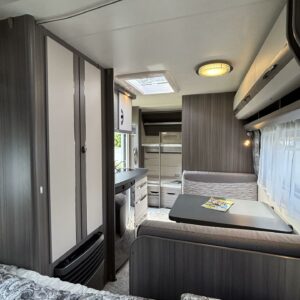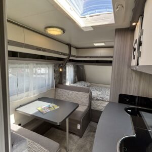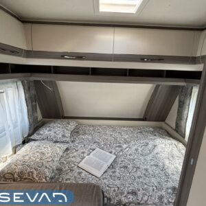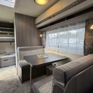 Todella siistikuntoinen kompakti perhevaunu mukavilla varusteilla. Tämä vaunu on palvellut historiansa aikana vain yhtä käyttäjäomistajaa ja vaunu on myös vuosittain käytetty huolloissa ja tarkastuksissa. Vaunun etuosaan on sijoitettu poikittainen parivuode minkä alle jää runsaasti säilytystiloja. Vuoteen alle on käynti myös ulkopuolisen luukun kautta. Keskeltä löytyy vastakkain istuttava pöytäryhmä mistä voidaan sijata lisävuode tarvittaessa. Toiselle sivulle on sijoitettu keittiö. Takaosaa hallitsee poikittaiset kerrosvuoteet ja WC/kylpyhuonetilat. Alemman kerrosvuoteen alta löytyy säilytystiloja. Vaunu on valmiiksi varusteltuna mm. aurinkopaneelilla ja pyörätelineellä. Varmasti tutustumisen arvoinen tapaus.