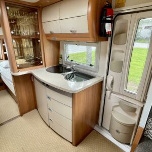 Erillisvuoteet, Kasettiverhot, Kasetti WC, Jääkaappi, Kattoluukku, Lattialämmitys, Liesi, Lämminvesiboileri, Pesuallas, Pakastelokero, Sähköpatruuna, Trumatic, Tukijalat, Lattiamatot asunto-osassa, kwh-mittari, Markiisi