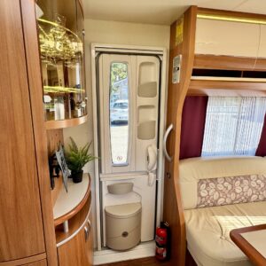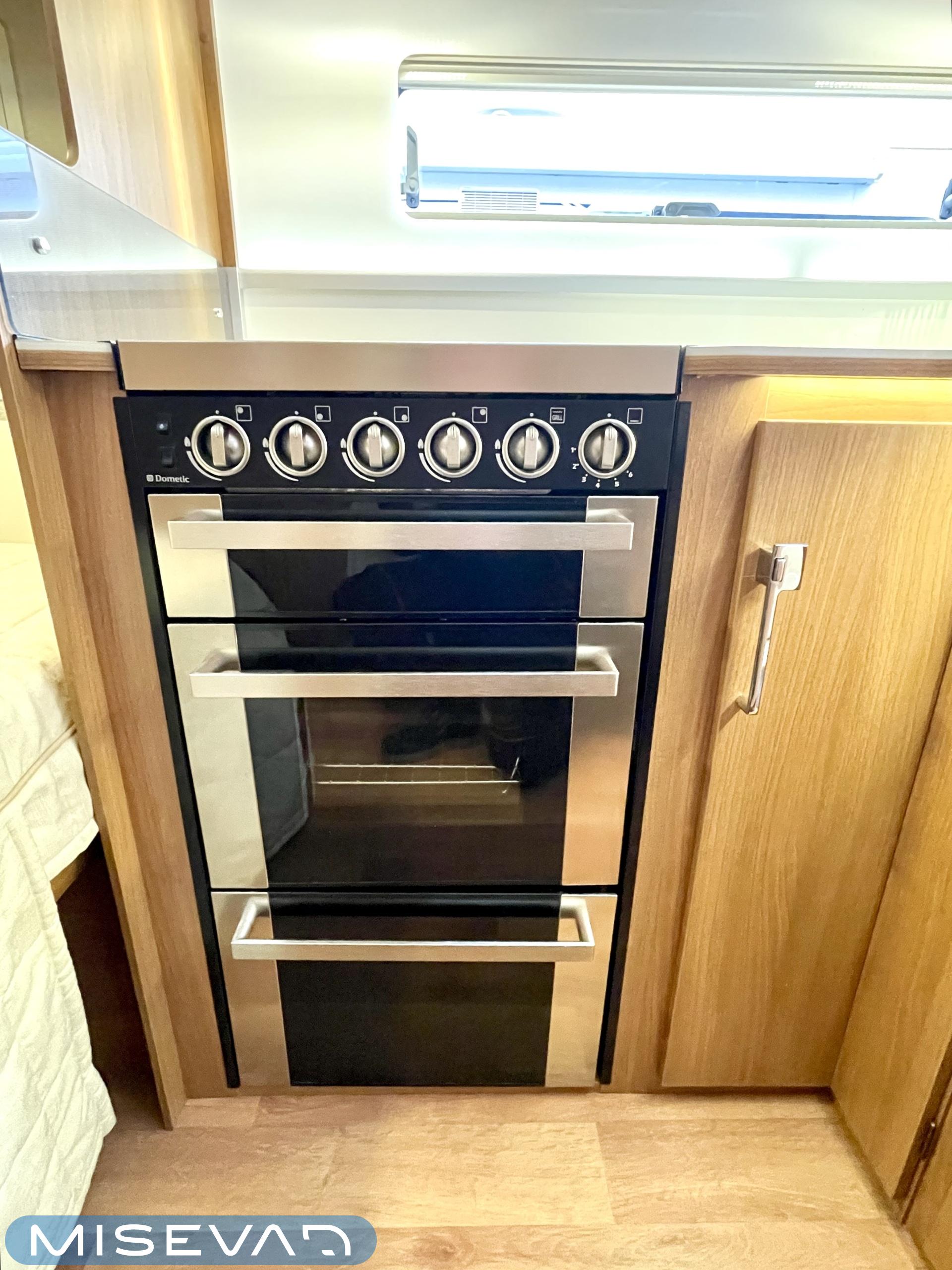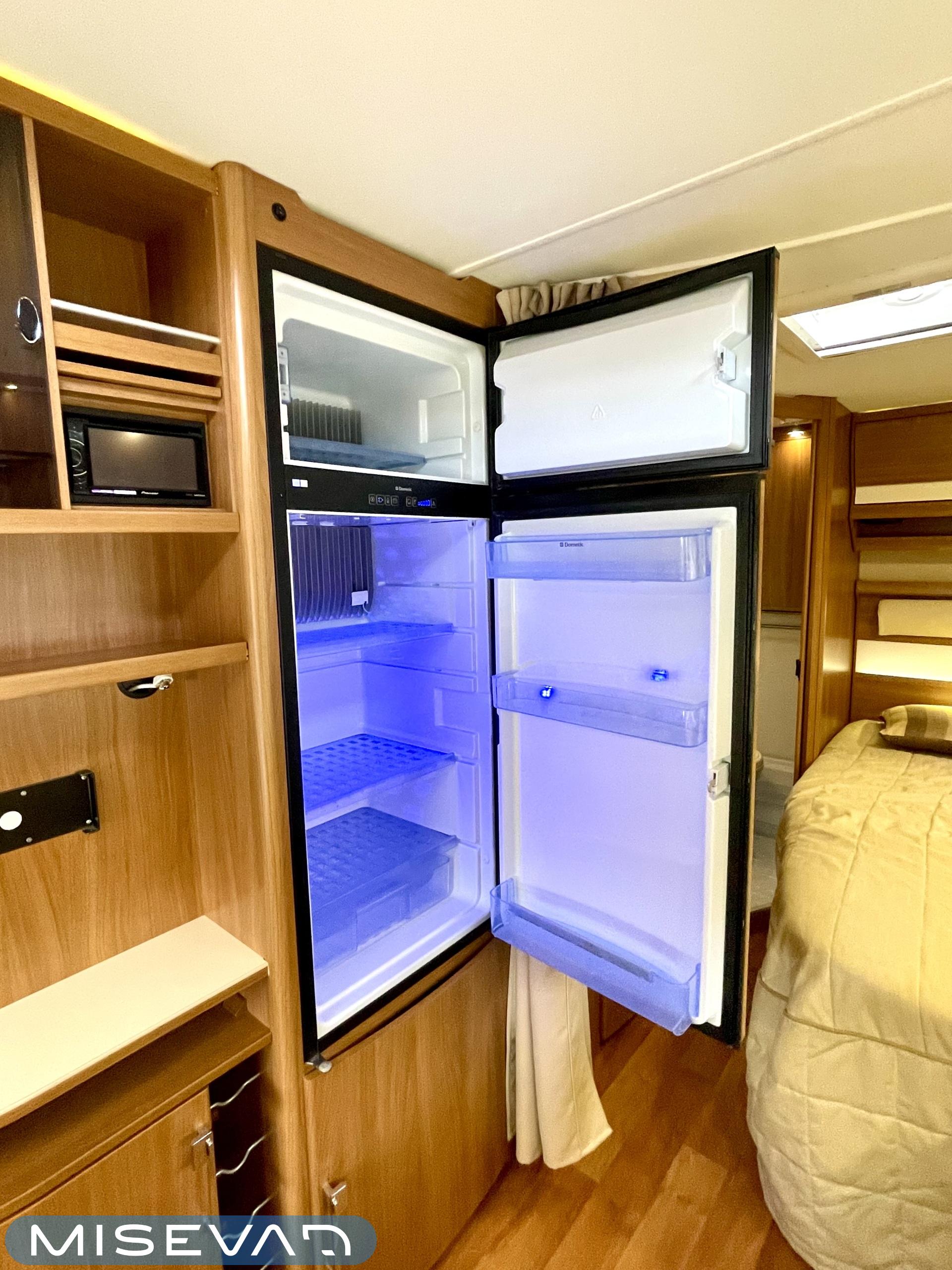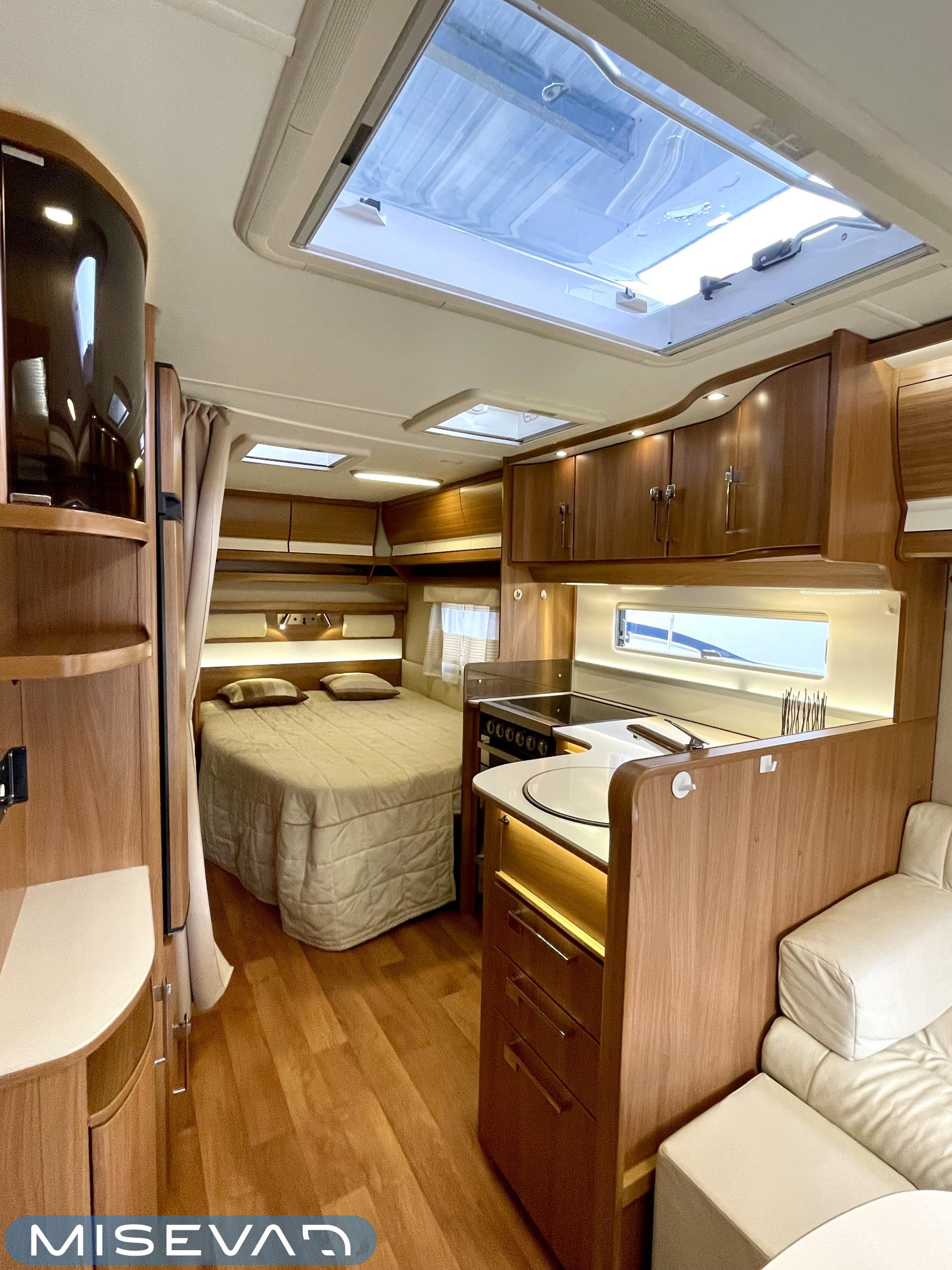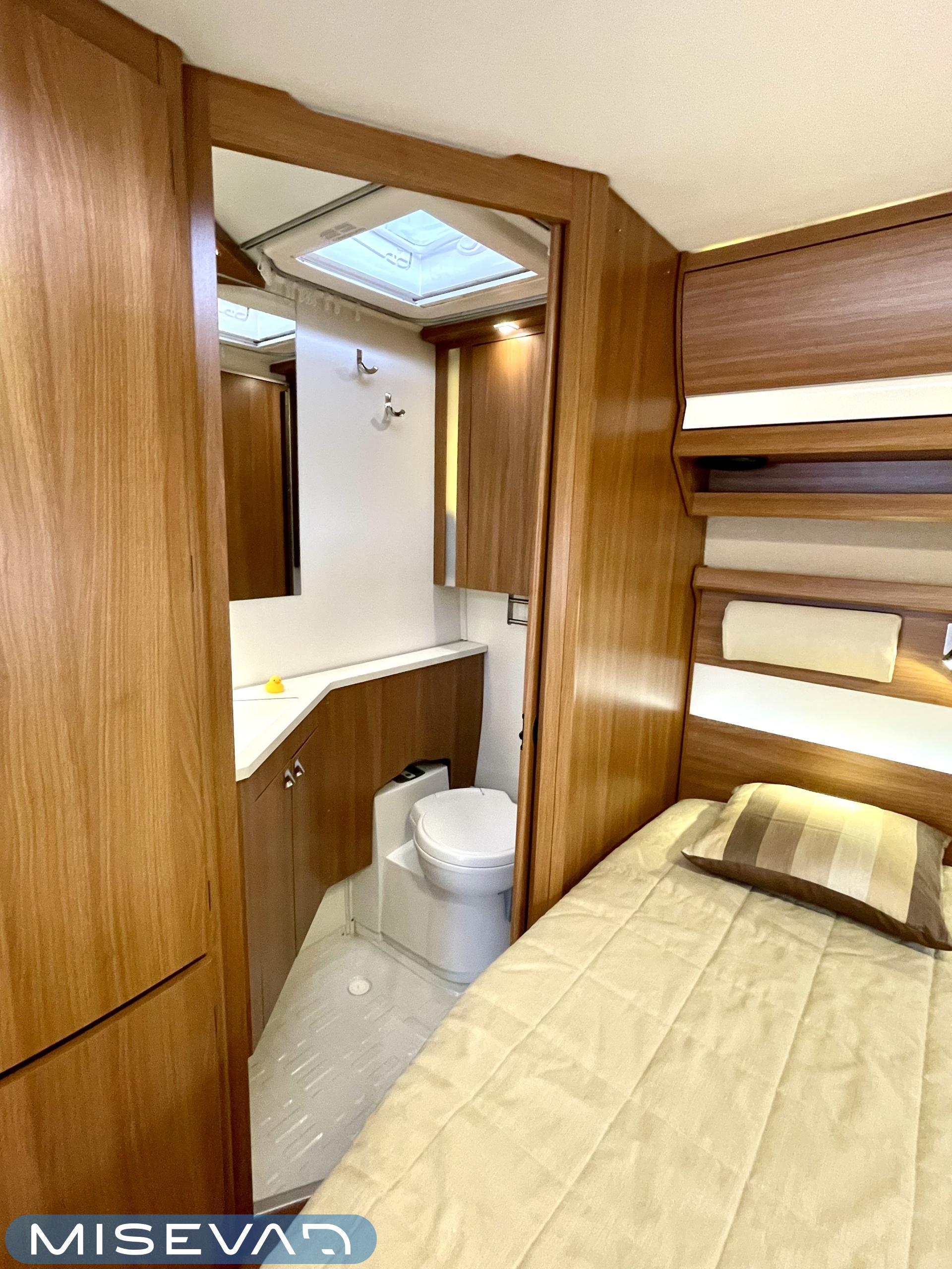 Alde, Aurinkopaneeli, Jääkaappi, Kasetti WC, Kattoluukku, Lattialämmitys, Markiisi, Nestekiertolämmitys, Parivuode, Pakastelokero, Pesuallas, Kasettiverhot, Pyöräteline, Suihku, Sähköpatruuna, Tukijalat