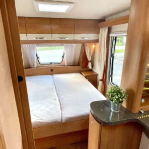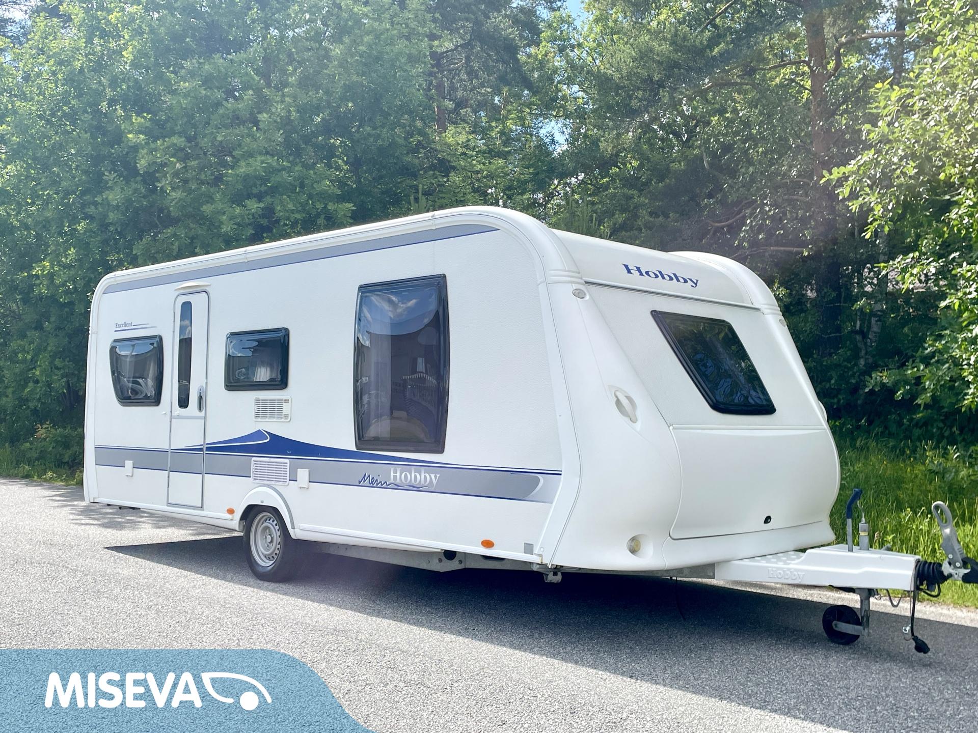 Hieno harvinaisempi saarekevuoteellinen Hobby. Takapäässä viihtyisä U-istuinryhmä jossa ruokailut tai illanistujaiset sujuvat mukavasti. Edessä leveä saarekevuode hyvään yöuneen.