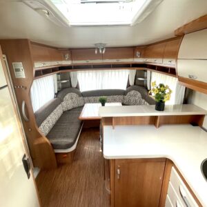 Todella kattavasti varusteltu Hobby toimivalla pohjaratkaisulla.
