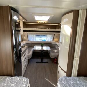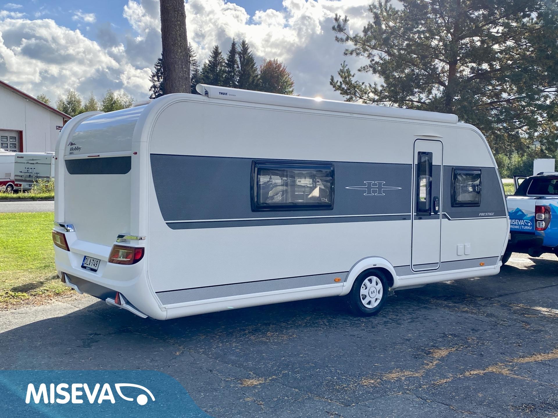 Mahtavan hieno Hobby mahtavasti varusteltuna. Tästä löytyy melkein kaikki mitä nyt yleisimpiä varusteita matkailuvaunuissa tahtoo esiintyä. Pohjaratkaisuna markkinoiden halutuin erillisvuodemalli. Vaunun takaosasta löytyy koko vaunun levyinen WC/kylpyhuoneosasto missä suihku on omana erillisenä tilanaan. Makuuhuoneessa on pitkittäiset erillisvuoteet ja vuoteiden alle jää säilytystiloja. Makuuosasto saadaan ”rauhoitettua” omaksi tilakseen haitarioven avulla. Etuosaa hallitsee ”tupakeittiö”, eli U-ryhmä, sekä keittiö normaalilla matkailuvaunun keittiövarustuksella. Keittiöstä löytyy mm. reilun kokoinen jääkaappi. Lämmintä tupaan tarjoilee Alden nestekeskuslämmitys ja Aldelle tyypilliseen tapaan kattilasta löytyy vastukset ja lämminvesiboileri. Ja kaiken herkkuna talvella lattia on mukavan lämmin sähköisen lattianlämmityksen ansiosta. Kesähelteillä sisätilat saadaan viilennettyä sopivaan lämpötilaan kattoilmastoinnin avulla ja tämä on mahtava varuste etenkin jos on lemmikkejä mukana. Vaunua on helppo siirrellä Mover vaununsiirtolaitten avulla. Hieno on niin päältä kun sisältäkin, ei juuriikaan sanomisen paikkaa löydy. Tule, tutustu ja ihastu. Tiedä vaikka tarttuisi mukaan matkaan?