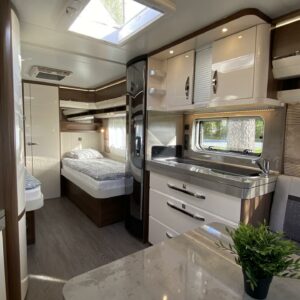 Alde, Aurinkopaneeli, Erillisvuoteet, Ilmastointi: Automaattinen, Jääkaappi, Kasetti WC, Kasettiverhot, Kattoluukku, Liesi, Lämminvesiboileri, Markiisi, Nestekiertolämmitys, Pakastelokero, Pesuallas, Pyöräteline, Suihku, Sähköpatruuna, Tukijalat, Kesärenkaat, kwh-mittari, sähkön ulosotto, televisioteline, Asuinosan hyttysovi/verho