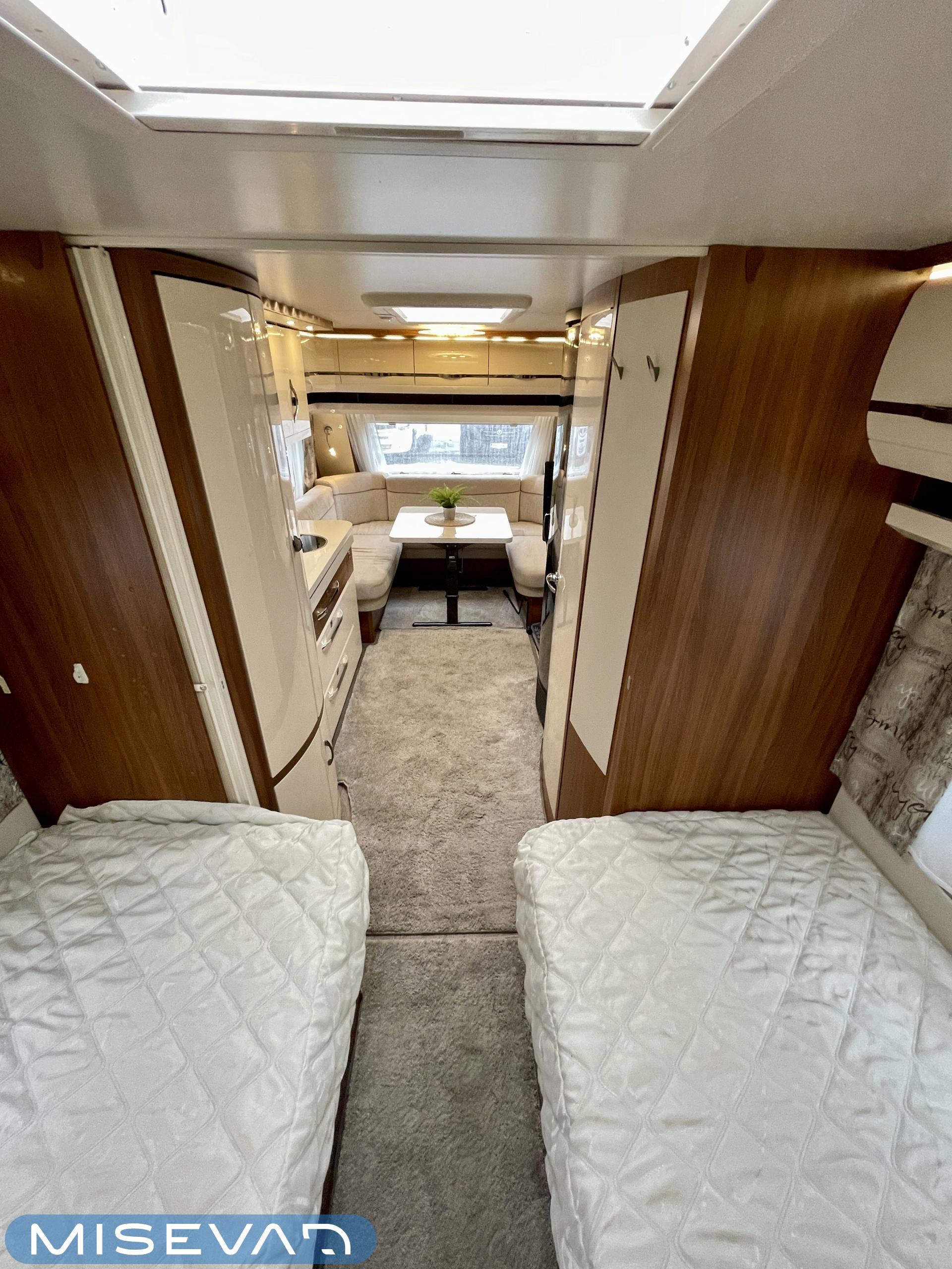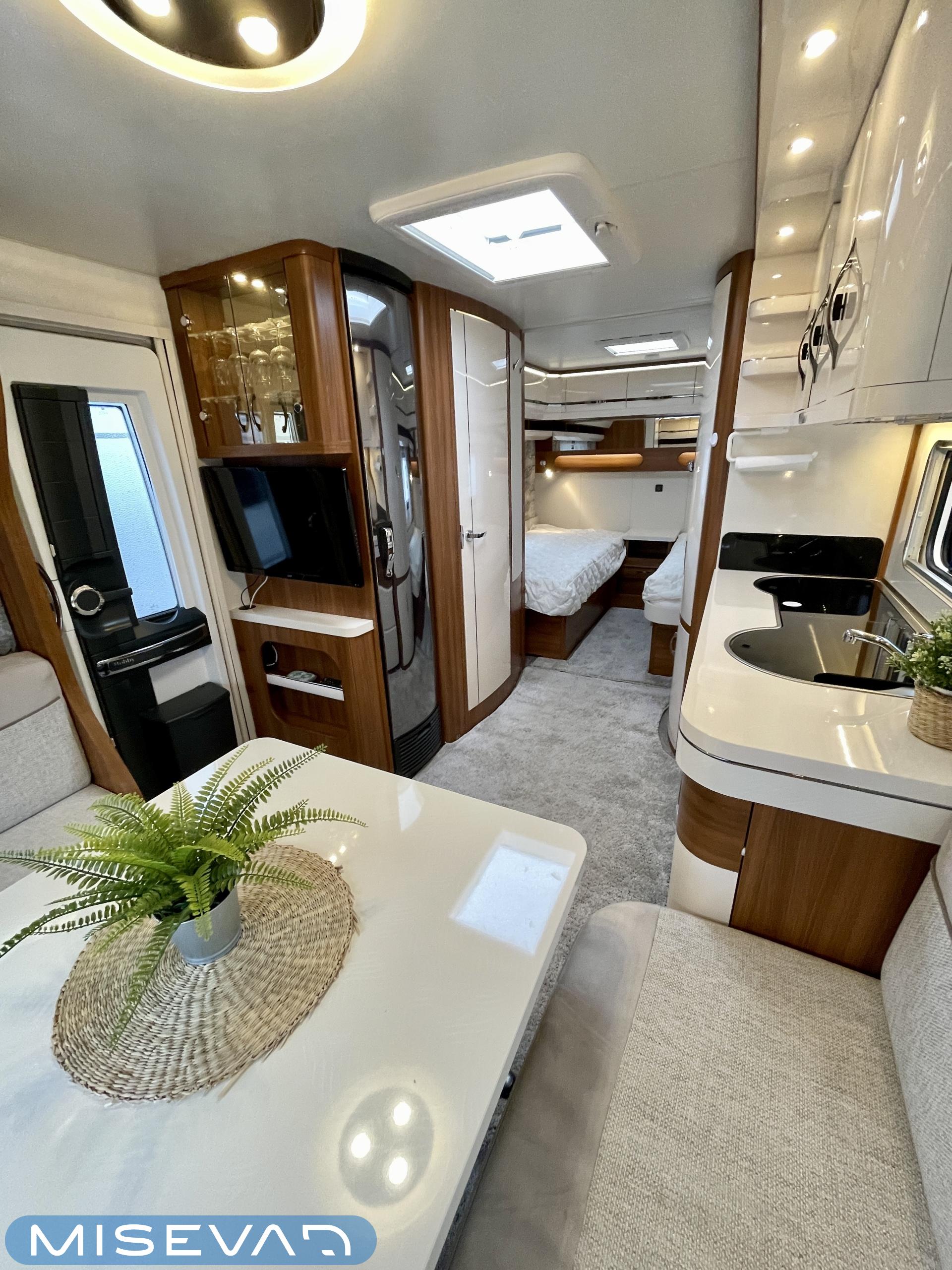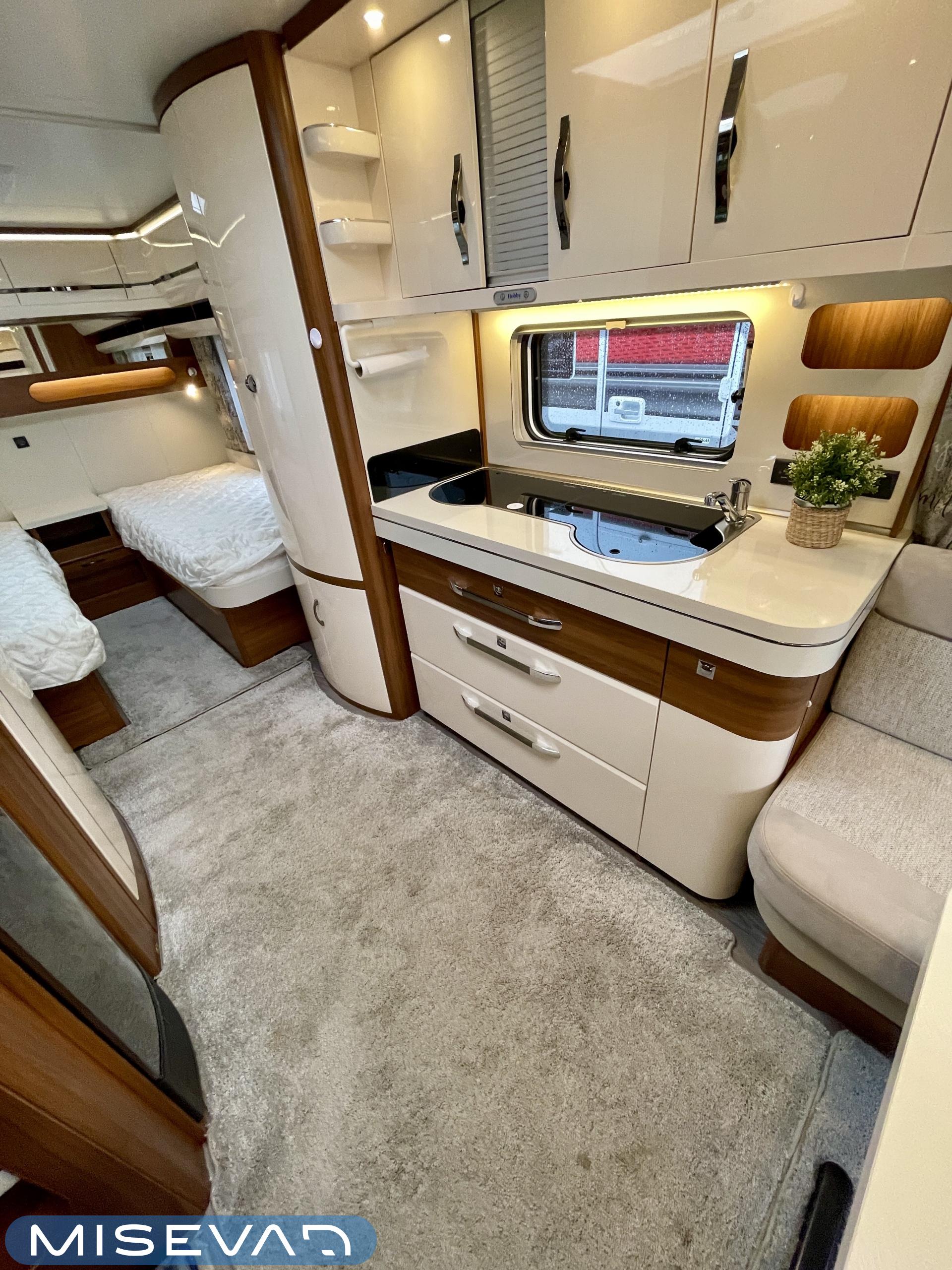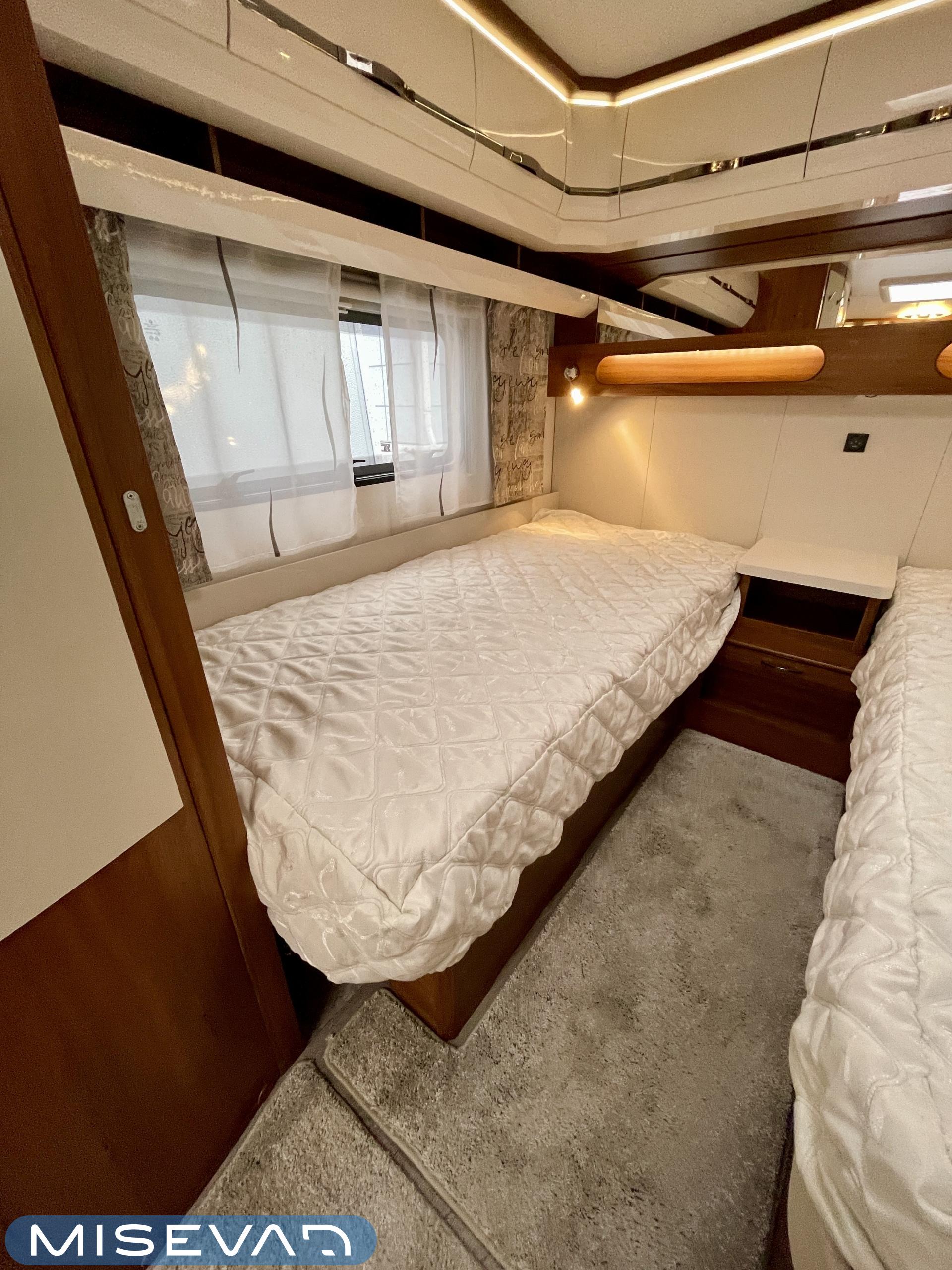 Erillisvuoteet, Alde- nestekiertoinen keskuslämmitys, Sähköpatruuna, Tukijalat, Pesuallas, Pakastelokero, Nestekiertolämmitys, Liesi, Lämminvesiboileri, Markiisi, Kasetti WC, mover, jenkkijääkaappi, liesituuletin, sähkön ulosotto, Kasettiverhot, Kattoluukku, Lattialämmitys (sähkö), Asuinosan hyttysovi/verho
