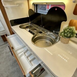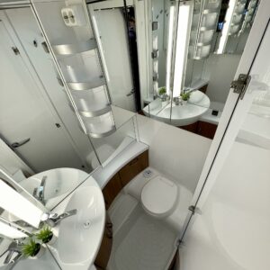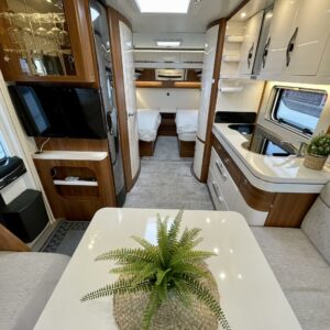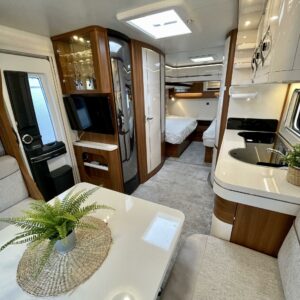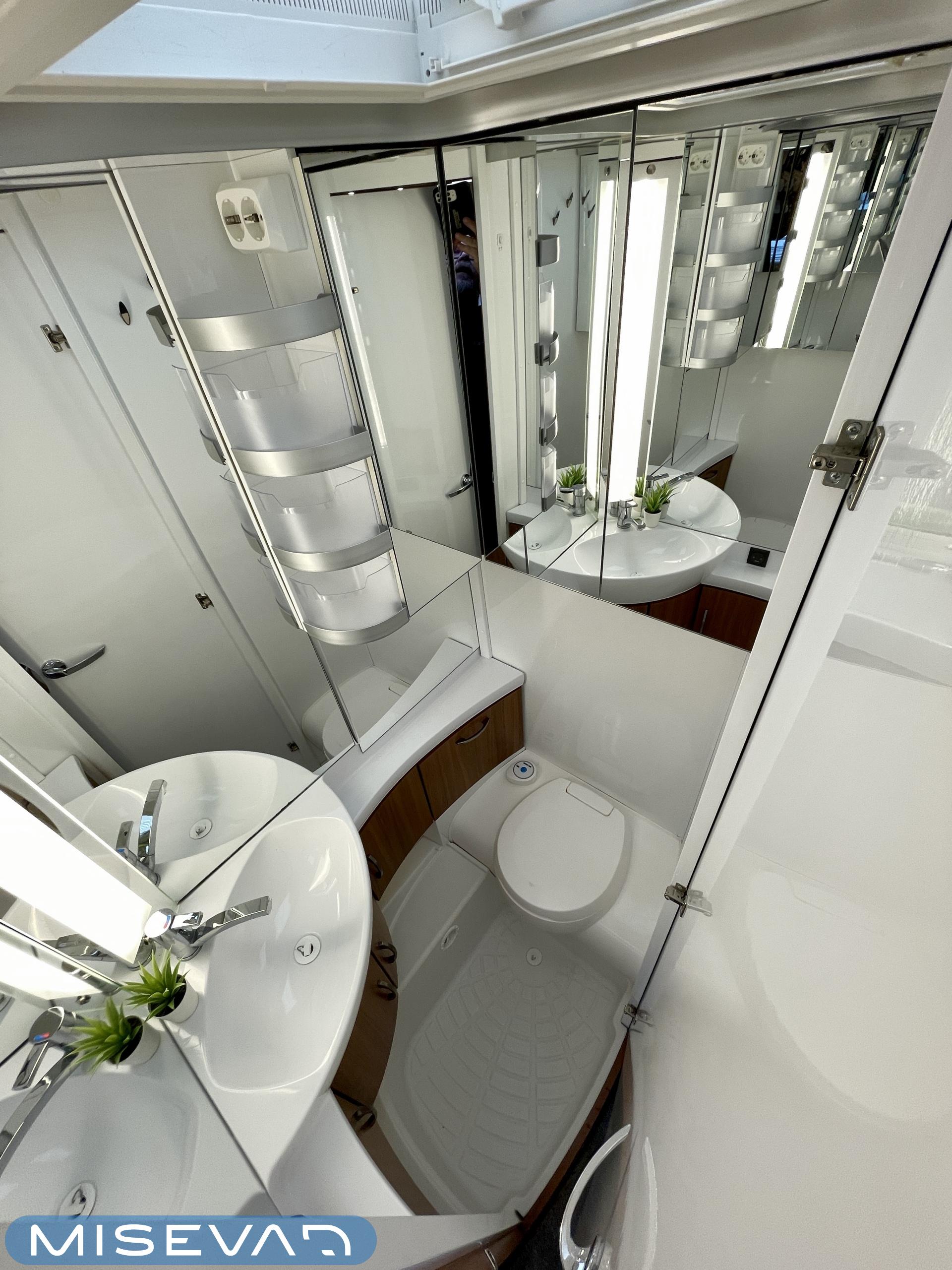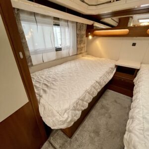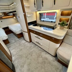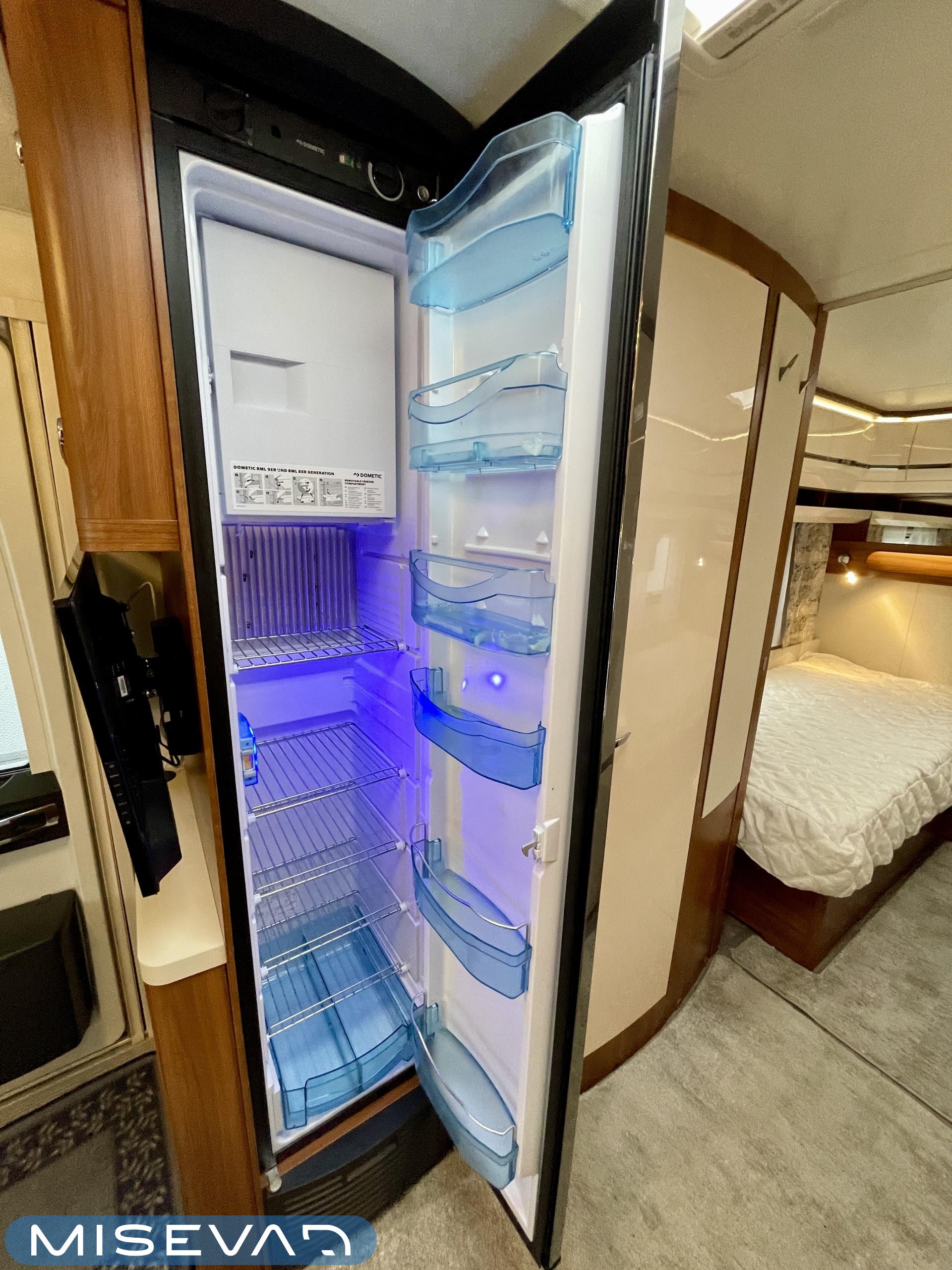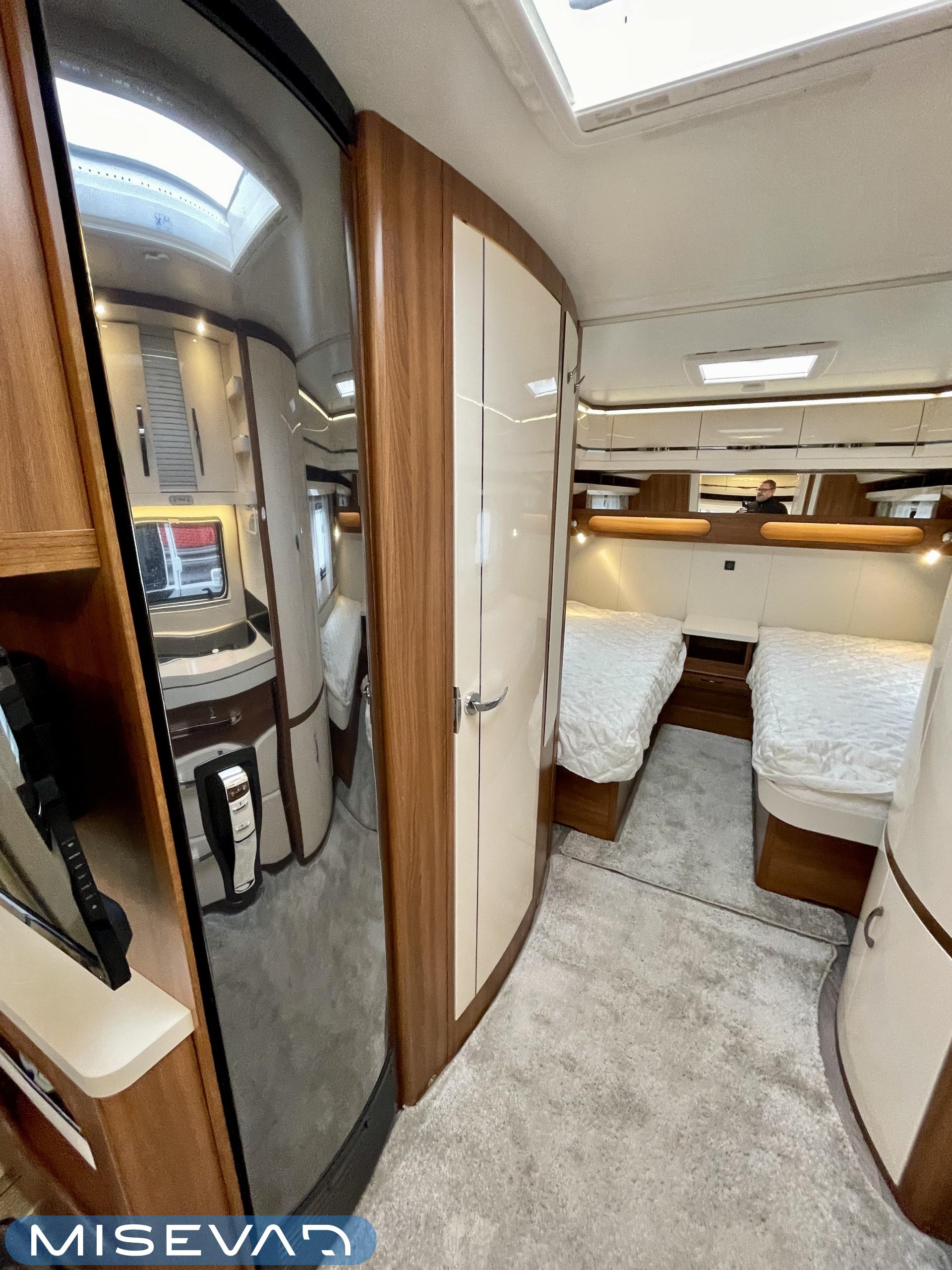 Erillisvuoteet, Alde- nestekiertoinen keskuslämmitys, Sähköpatruuna, Tukijalat, Pesuallas, Pakastelokero, Nestekiertolämmitys, Liesi, Lämminvesiboileri, Markiisi, Kasetti WC, mover, jenkkijääkaappi, liesituuletin, sähkön ulosotto, Kasettiverhot, Kattoluukku, Lattialämmitys (sähkö), Asuinosan hyttysovi/verho