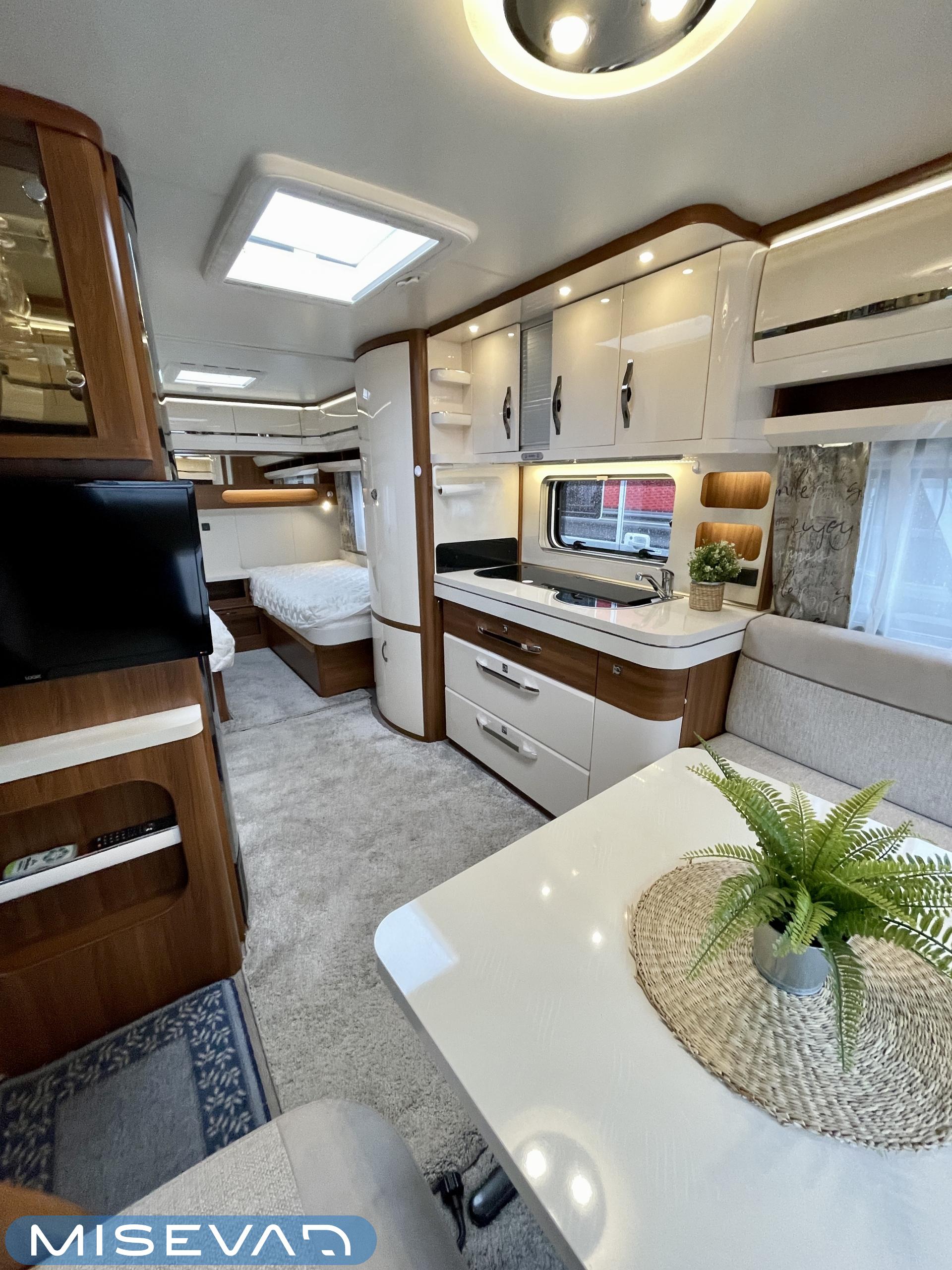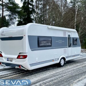 Ulkotilaa ja mukavuutta leiriytymiseen tuo markiisi, ja vaunun siirtely onnistuu vaivatta moverin avulla. Kaikin puolin hyvin pidetty ja valmis lähtemään suoraan seuraavalle reissulle.