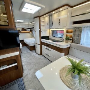 Myydään siistikuntoinen valoisa Hobby 560 LU, tilava ja laadukas matkailuvaunu mukavalla pohjaratkaisulla. Vaunussa on Alden nestekiertolämmitys sekä lattialämmitys, jotka pitävät sisäilman tasaisen lämpimänä ympäri vuoden. Avarasta keittiöstä löytyy jenkkijääkaappi ja liesi, jotka tekevät ruoanlaitosta helppoa myös pidemmillä matkoilla. Erillisvuoteet takaavat hyvän nukkumismukavuuden, ja tarvittaessa vuoteet saa yhdistettyä suureksi kokonaisuudeksi.