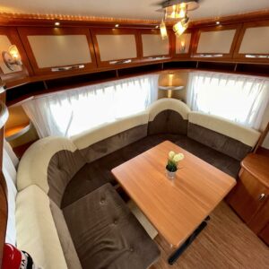 Ikäisekseen todella siistin oloinen tarkastettu ja kosteusmitattu erillisvuoteellinen vaunu. Tämä yksilö on Aldella varustettu. Mukavaan U-istuinryhmään voi helposti kattaa ruokailun tai vaikka istua iltaa pidempäänkin. Pariskunnalle erittäin toimiva vaunu, joka ei ole hinnalla pilattu. Tämä ei kauaa viihdy myyntipihalla. Tule ihastumaan ja hae edullisesti pois.