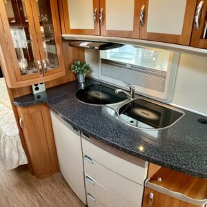 Tukijalat, Televisio, Pesuallas, Pakastelokero, Markiisi, Liesituuletin, Liesi, Kattoluukku, Kasettiverhot, Kasetti- WC, Jääkaappi, Erillisvuoteet, Alde- nestekiertoinen keskuslämmitys