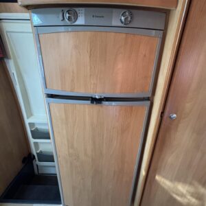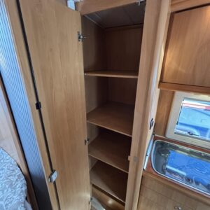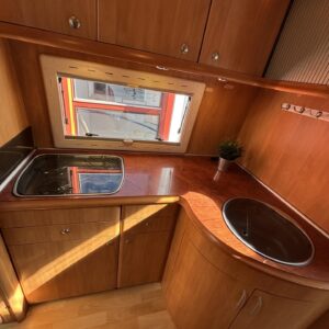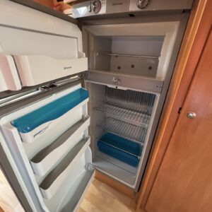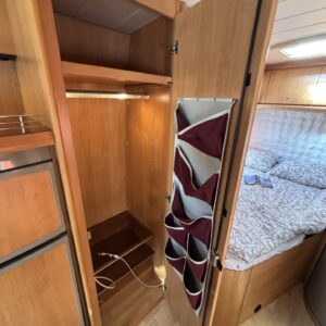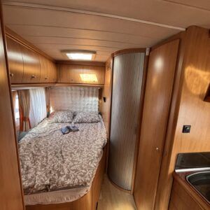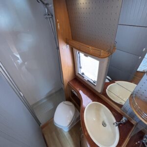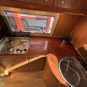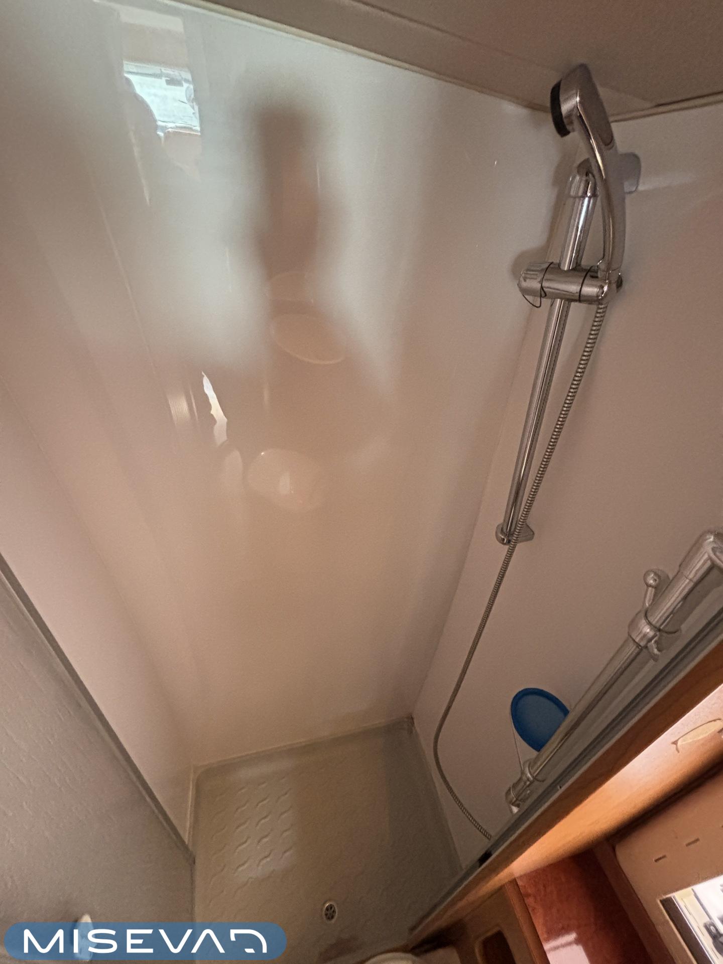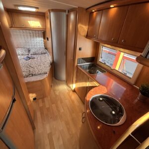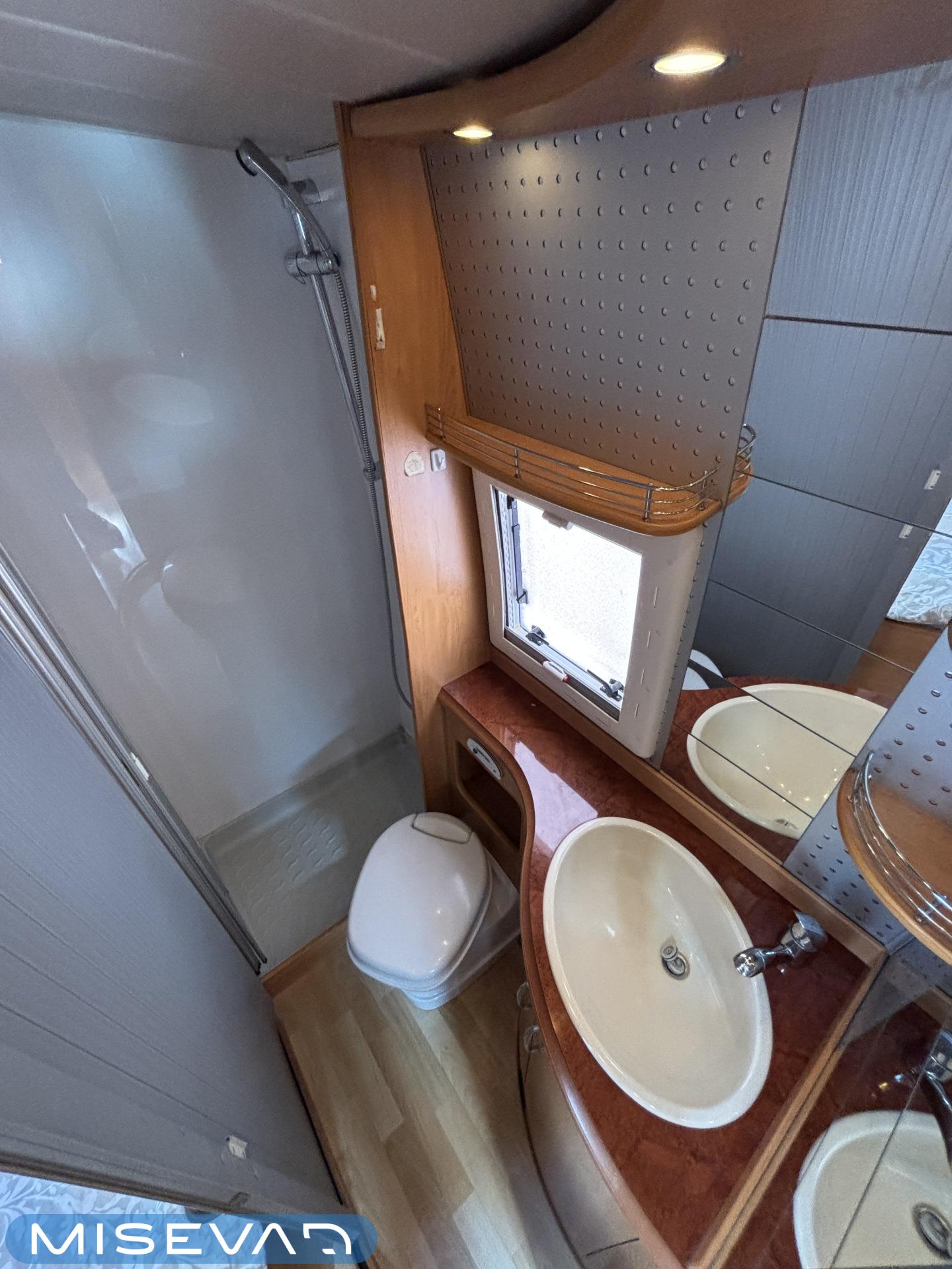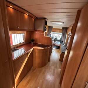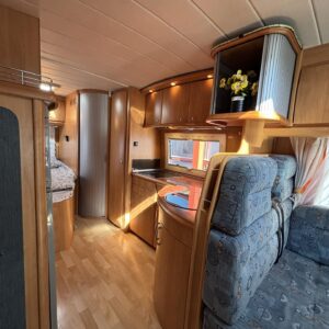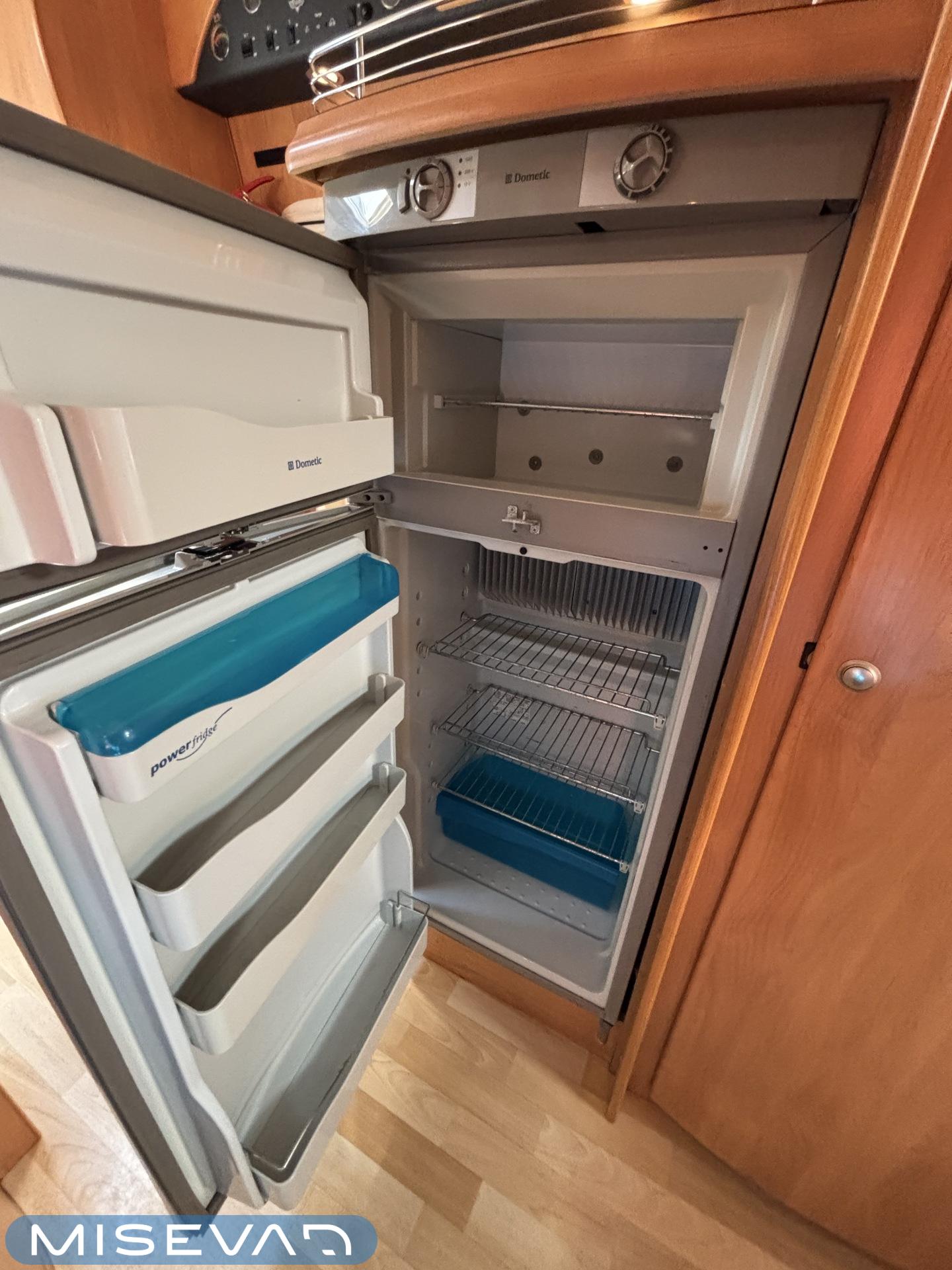 Hotellihuone pyörillä! Lähes kahdeksan metrin kokonaispituuden omaava aikansa legenda ja vieläpä ihan kohtuullisen ajomäärän omaavana. Pöytäryhmän ympärille mahtuu isompikin porukka lyömään korttia ja parantamaan maailmaa. Melkoisen hienossa kunnossa säilynyt visuaalisesti, etenkin sisätiloiltaan. Eikä tuo nyt hassumpi ole ulkohipiältäänkään. Tilaa on ruhtinaallisesti, etenkin säilytystiloja, eli voisi toimittaa hienosti vaikkapa pidempiaikaisemmankin majapaikan virkaa. Auton takaosa on makkari / kylppäritiloja missä suihku on omana erillisenä tilanaan. Keskelle sijoittuu L-keittiö, pari isompaa pystykaappia ja tilava jääkaapi/pakastin yhdistelmä. Keittiötaso tarjoilee mukavasti laskutilaa esim. kahvinkeittimelle / leivänpaahtimelle / airfryerille. Etuosahan on sitten olohuonetta. Molemmin puolin on isot sivusohvat ja taittopöytä keskellä. Tähän yhdistyvät vielä kääntyvät ohjaamon penkit, eli isommankin ryhmän illanistujaiset ovat mahdolliset. Ohjaamosta löytyy mm. ilmastointi, sekä vakionopeuden säädin. Autohan on neljälle rekisteröity ja neljälle löytyy myös vyöpaikat. Sohvaryhmästä saadaan pitkittäissuuntaiset vuoteet kooltaan 160X65 ja 190X65. Lisäksi pöytä on laskettavaa mallia. Auto on ajamiseen vaaditaan vähintään C1-luokan ajokortti. Näitä ei ole liikaa tarjolla … kuka kerkeää???