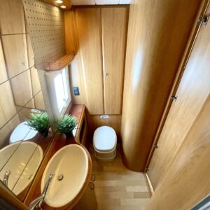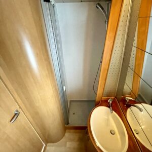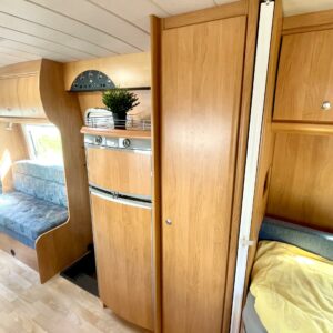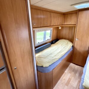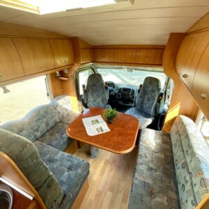 Auton etuosasta löytyy iso L- sohvaryhmä sivusohvalla. Keskellä autoa on keittiö jonka varustukseen kuuluu muunmuassa iso jääkaappi-pakastin. Auton takaosassa pitkittäiset erillisvuoteet ja koko auton levyinen pesuhuone/ WC erillisellä suihkunurkkauksella.