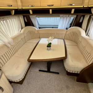 Alde, Erillisvuoteet, Kaasu-uuni, Jääkaappi, Ilmastointi: Automaattinen, Kasetti WC, Kasettiverhot, Kattoluukku, Lattialämmitys, Lattiamatot asunto-osassa, Liesi, Pesuallas, Pakastelokero, Nestekiertolämmitys, Lämminvesiboileri, Suihku, Sähköpatruuna, TV-antenni tai lautasantenni, Tukijalat