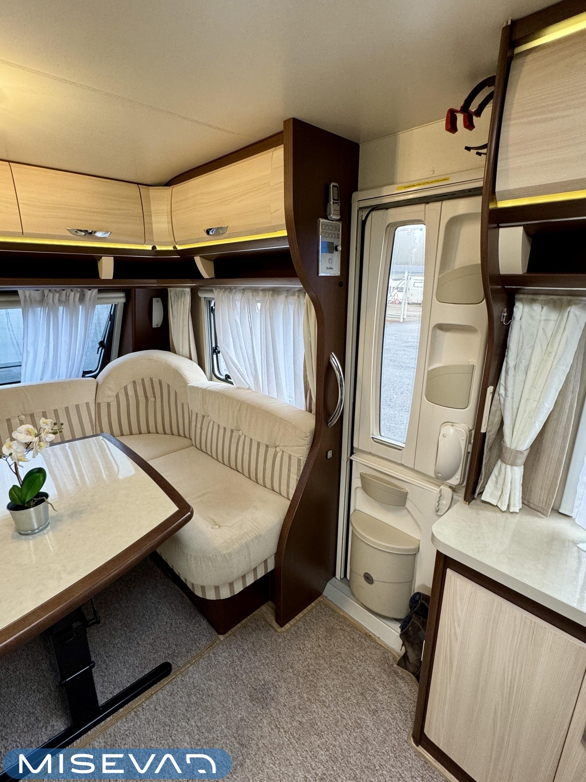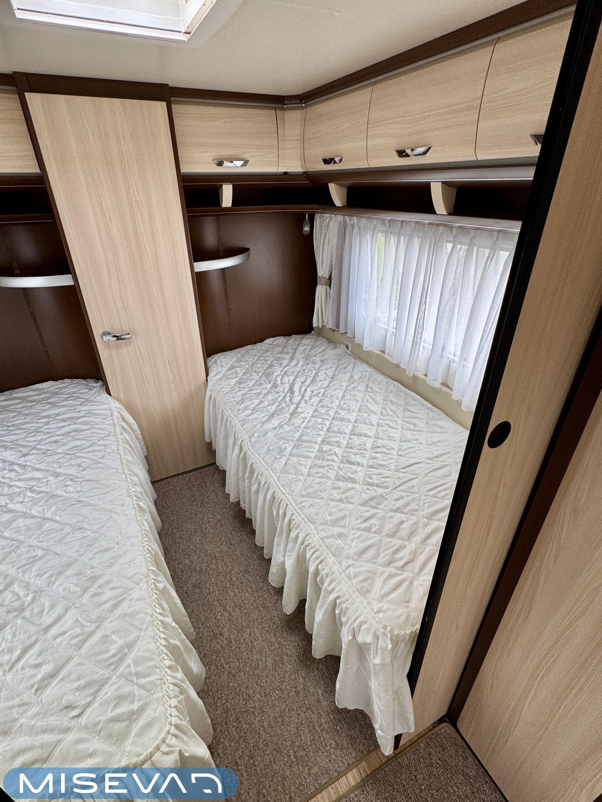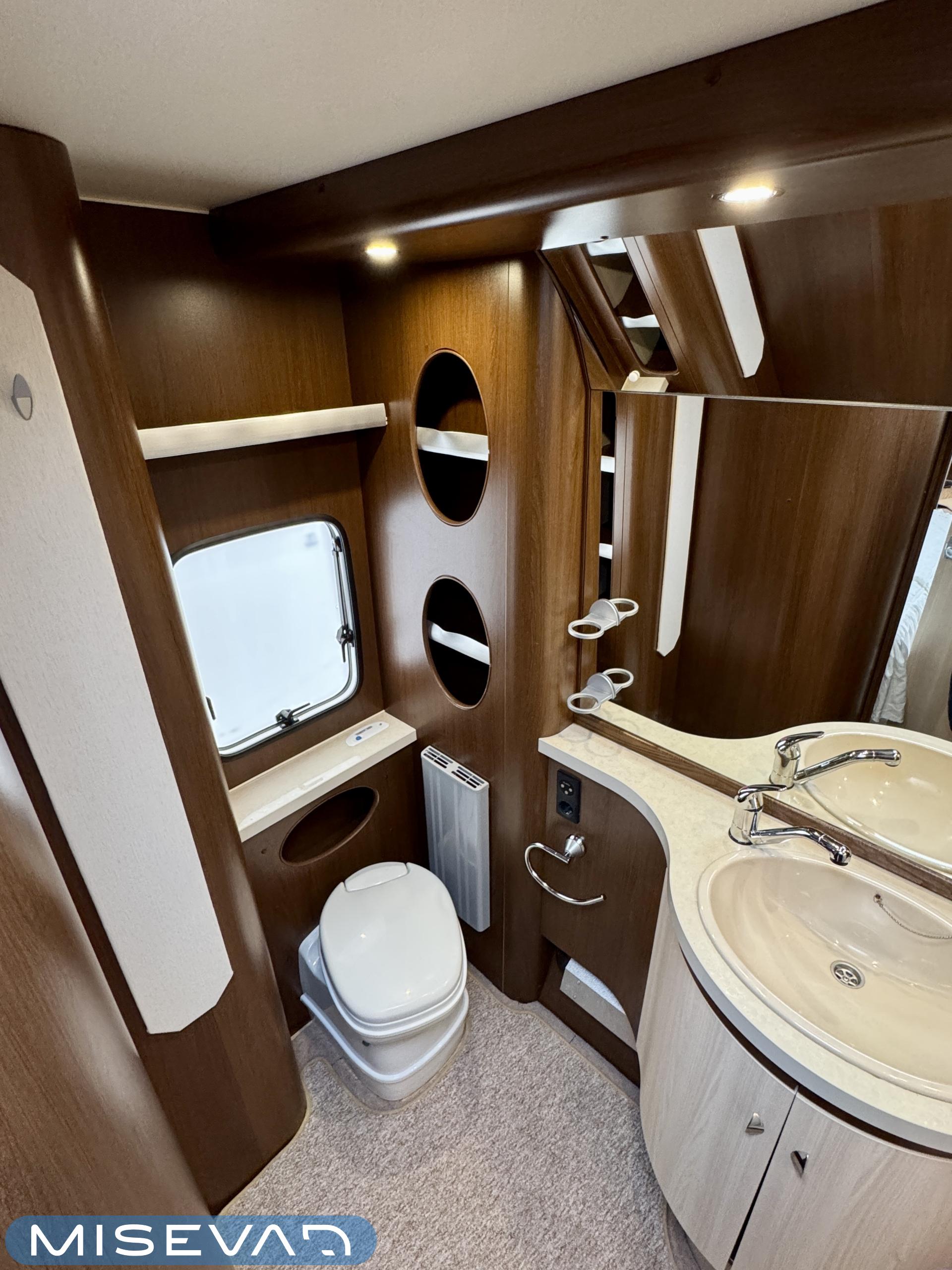 Alde, Erillisvuoteet, Kaasu-uuni, Jääkaappi, Ilmastointi: Automaattinen, Kasetti WC, Kasettiverhot, Kattoluukku, Lattialämmitys, Lattiamatot asunto-osassa, Liesi, Pesuallas, Pakastelokero, Nestekiertolämmitys, Lämminvesiboileri, Suihku, Sähköpatruuna, TV-antenni tai lautasantenni, Tukijalat
