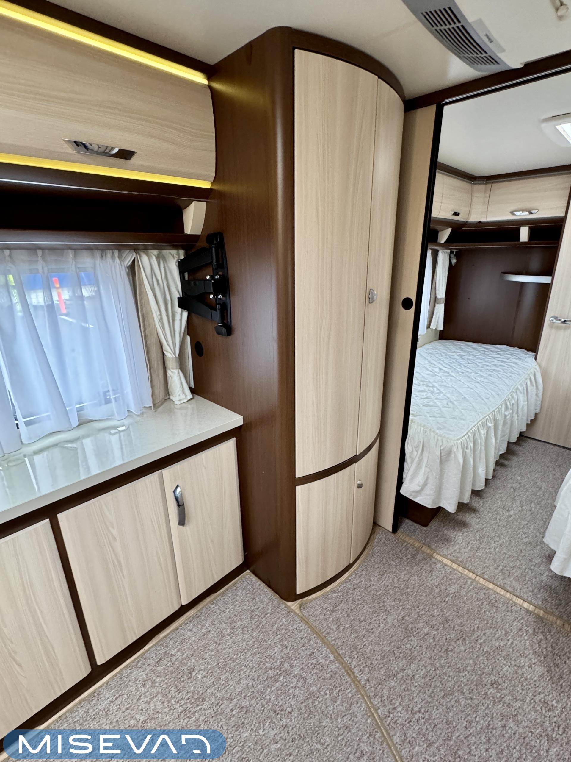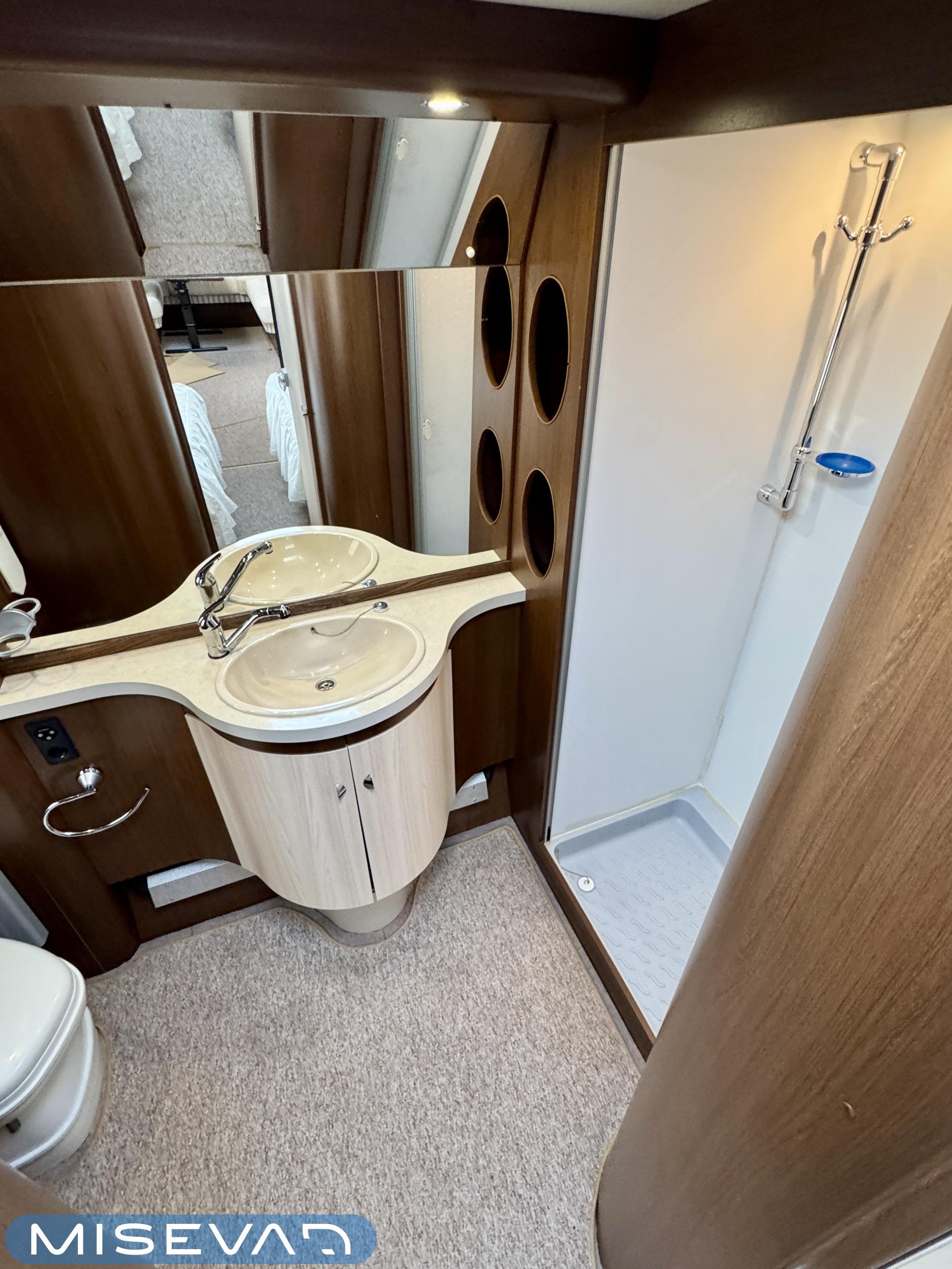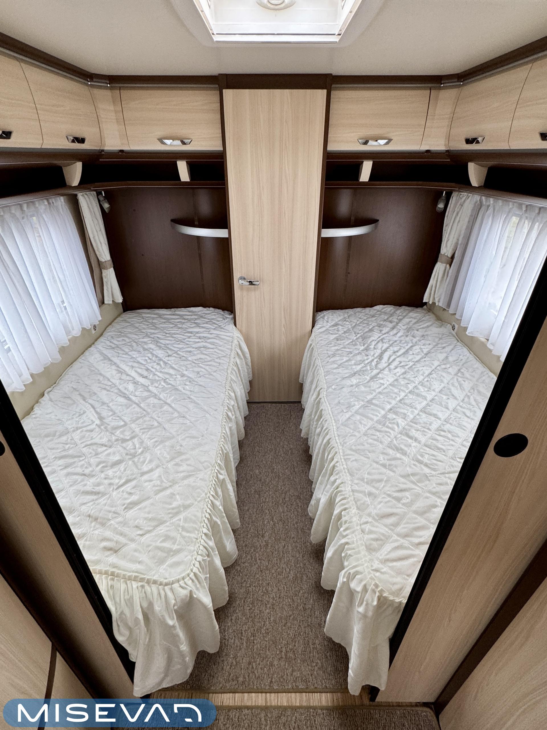 Alde, Erillisvuoteet, Kaasu-uuni, Jääkaappi, Ilmastointi: Automaattinen, Kasetti WC, Kasettiverhot, Kattoluukku, Lattialämmitys, Lattiamatot asunto-osassa, Liesi, Pesuallas, Pakastelokero, Nestekiertolämmitys, Lämminvesiboileri, Suihku, Sähköpatruuna, TV-antenni tai lautasantenni, Tukijalat