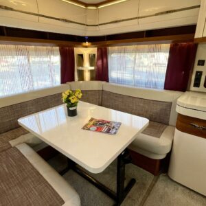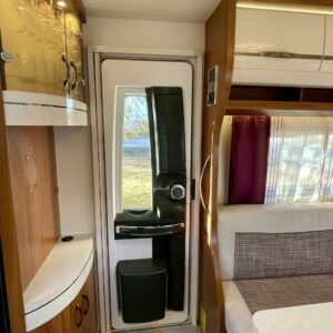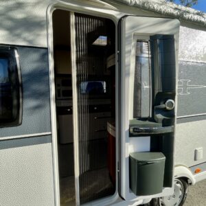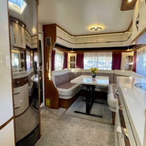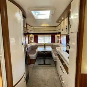 Hienokuntoinen Hobby valmiiksi varusteltuna! Vaaleat ja tummat pinnat vuorottelevat tämän vaunun sisustuksessa luoden lämpimän ja nykyaikaisen esteettisen kokonaisuuden.