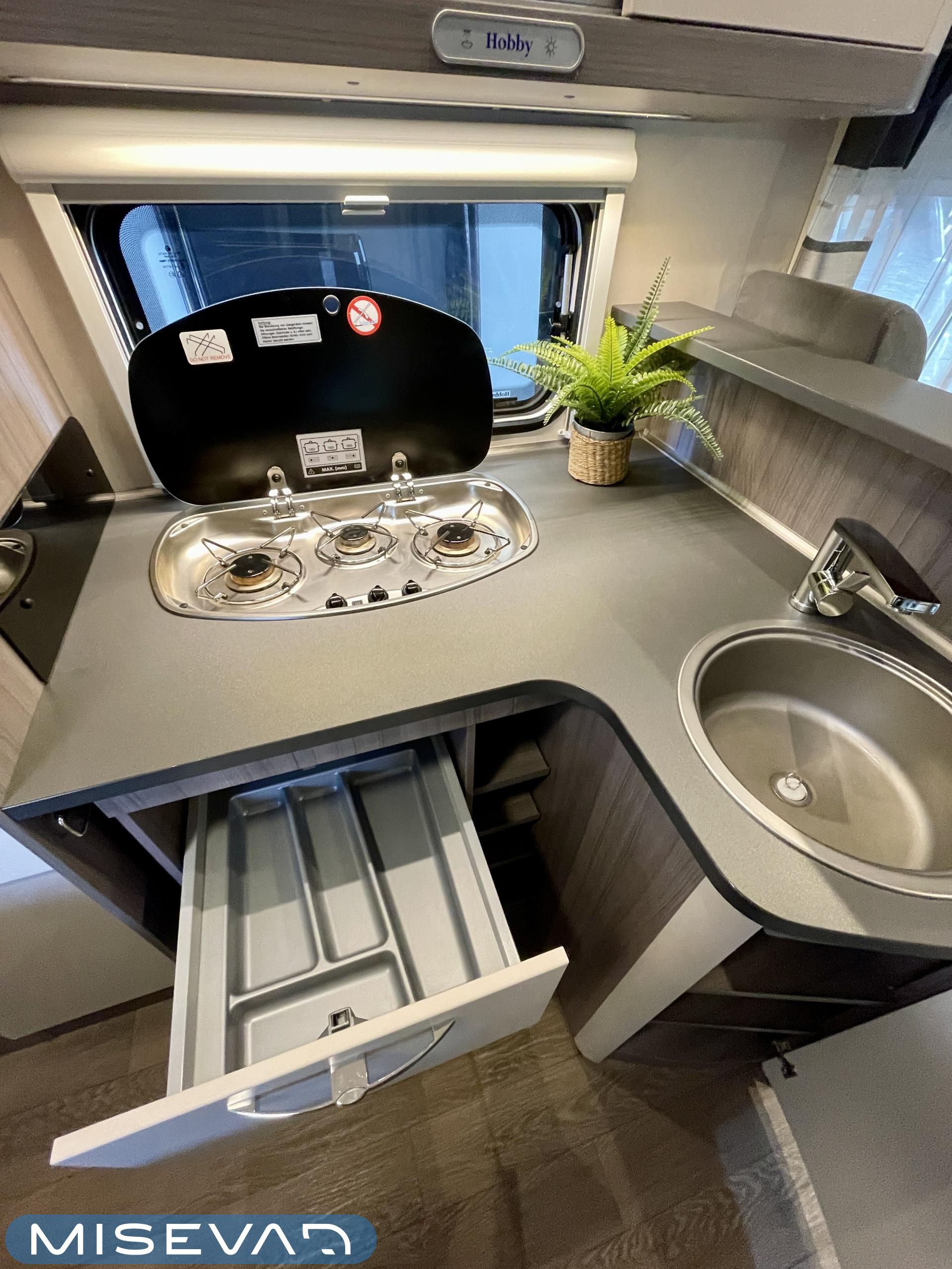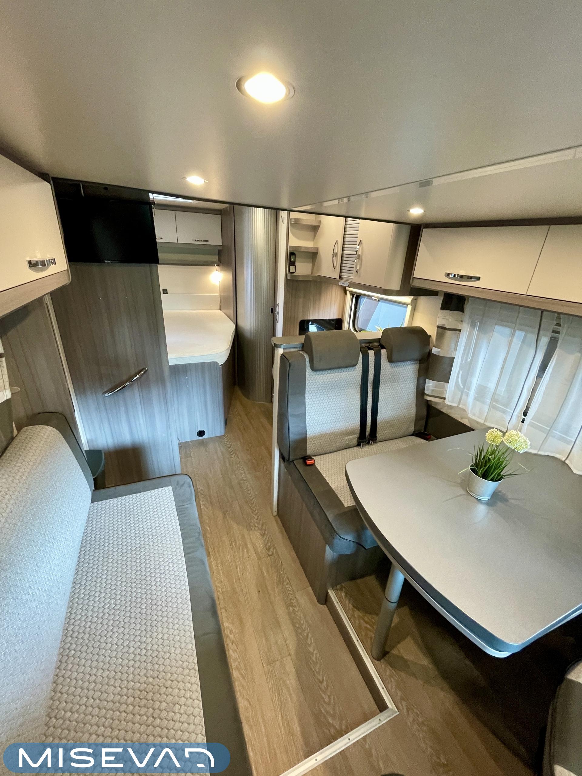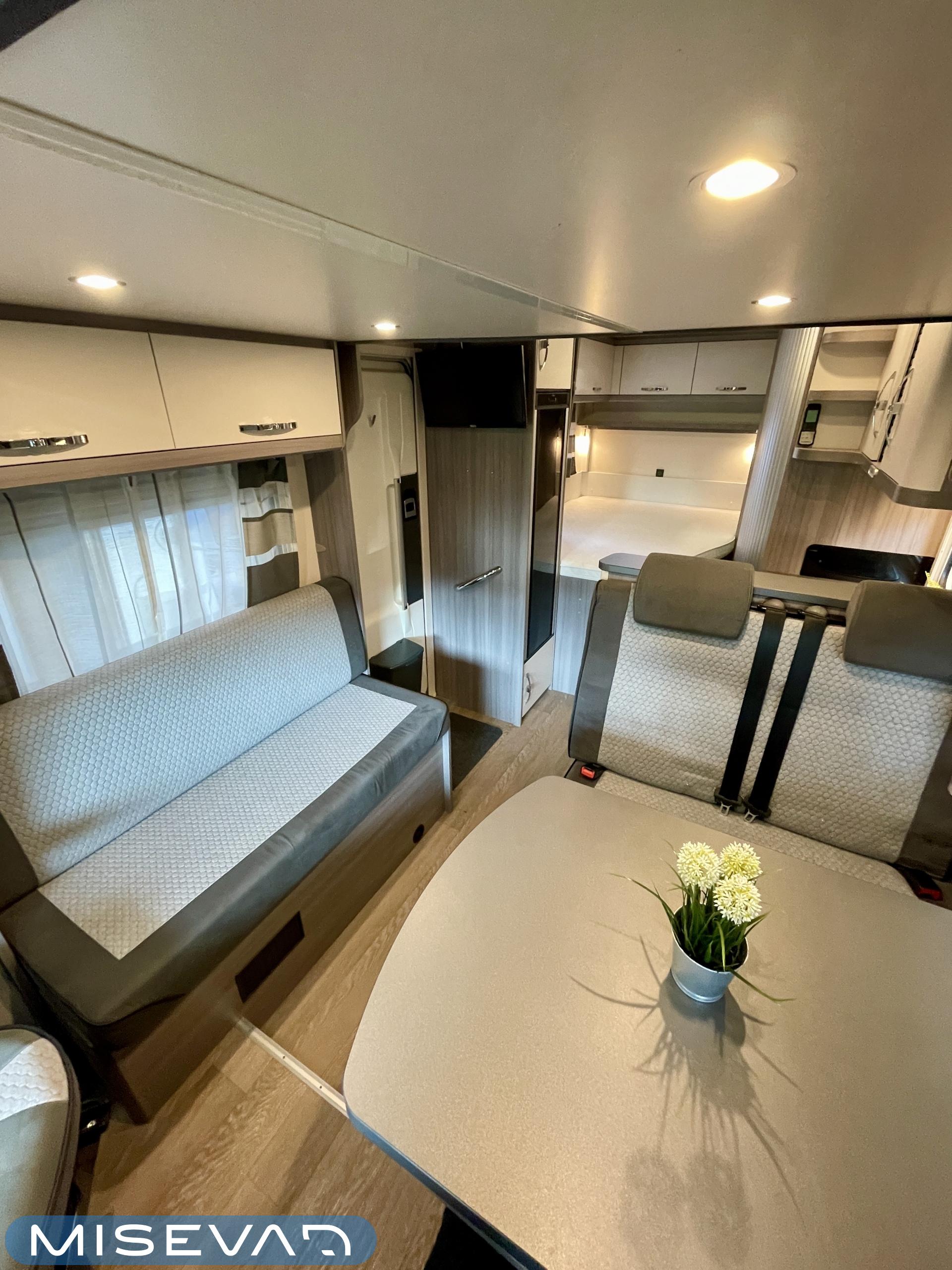 Truma, Sähköpatruuna, ABS-jarrut, Airbag, Eristetty harmaavesisäiliö, Huoltokirja, Jääkaappi, Kasetti WC, Kasettiverhot, Kattoluukku, Käynnistyksenesto, Lattiamatot asunto-osassa, Liesi, Lämminvesiboileri, Markiisi, Navigaattori, Ohjaustehostin, Pakastelokero, Parivuode, Pesuallas, Pysäköintikamera, Radio, Suihku, Sähkökäyttöiset ikkunat, Sähköpeilit, Sähkörappu, TV-antenni tai lautasantenni, Turbo, Vakionopeudensäädin, Ilmastointi (ohjaamo), Ilmastointi (asuintila), laskuvuode, ranskalainen vuode, ohjaamon kasettiverhot, jenkkijääkaappi, liesituuletin, televisio, Multimedialaite (sis. p-kamera, navi, soitin, bluetooth, handsfree), Asuinosan hyttysovi/verho