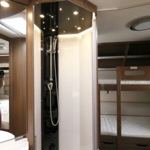 Alde, Nestekiertolämmitys, Ilmastointi: Automaattinen, Jääkaappi, Kasetti WC, Kasettiverhot, Lattialämmitys, Lämminvesiboileri, Pakastelokero, Parivuode, Suihku, Sähköpatruuna
