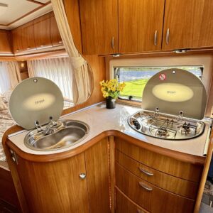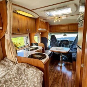 Kylläpä saapui hieno Hobby Misevan pihalle. Sisälle kun kurkistaa, niin kyllähän tällaisen haluaisi omistaa. Lähteä reissuun jonnekin maailmaan ääriin tai talveksi lämpimään. Tekstiilit ja pinnat auton sisällä on hyvässä kunnossa ja tottakai misevalaisittain auto on siivottu taas viimeisen päälle. Takaa löytyy mukavan pehmeä parisänky. Ja sängyn alla säilytystilaa. Tilaan pääsee käsiksi myös ulkokautta. Takana sijaitsee wc, sekä reilun kokoinen suihku. Suihkia voi halutessaan myös ulkona, ikkunan kautta. Säilytystilaa kaappien muodossa on Hobbyssä todellakin mukavasti. Keittiöön mahtuu varmasti kaikki kattilat ja pannut. Lähes koko auton ympäri kulkee asuintilassa yläkaapit. Suihkutilan vieressä on oma vaatekaappi. Sekä jääkaappi on mallia iso ja löytyy erillinen pakastin. L-muotoinen keittiö on jokaisen karavaanarikokin unelma. Laskutilaa on runsaasti kokkailuun. Etuosan pöydän ympärille mahtuu helposti neljä syömään. Ja pöytä muuttuu teleskooppijalan ansiosta sängyksi. Tästä seuraavalle tyylikäs ja siisti Hobby. Tule tutustumaan Janakkalaan, Turenkiin.