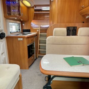 Pullan tuoksuinen Hobby kesän seikkailuihin. Kokoisekseen tilavasta autosta löytyy reilun takatallin lisäksi kaasu-uuni ja sähköinen lattialämmitys. Fordin 130 heppainen moottori turbolla jaksaa vääntää mutkaisemmillakin teillä. Asuinosan sisustus on tyylikkäästi toteutettu ja kutsuu viihtymään. Autossa myös mottorin webasto.