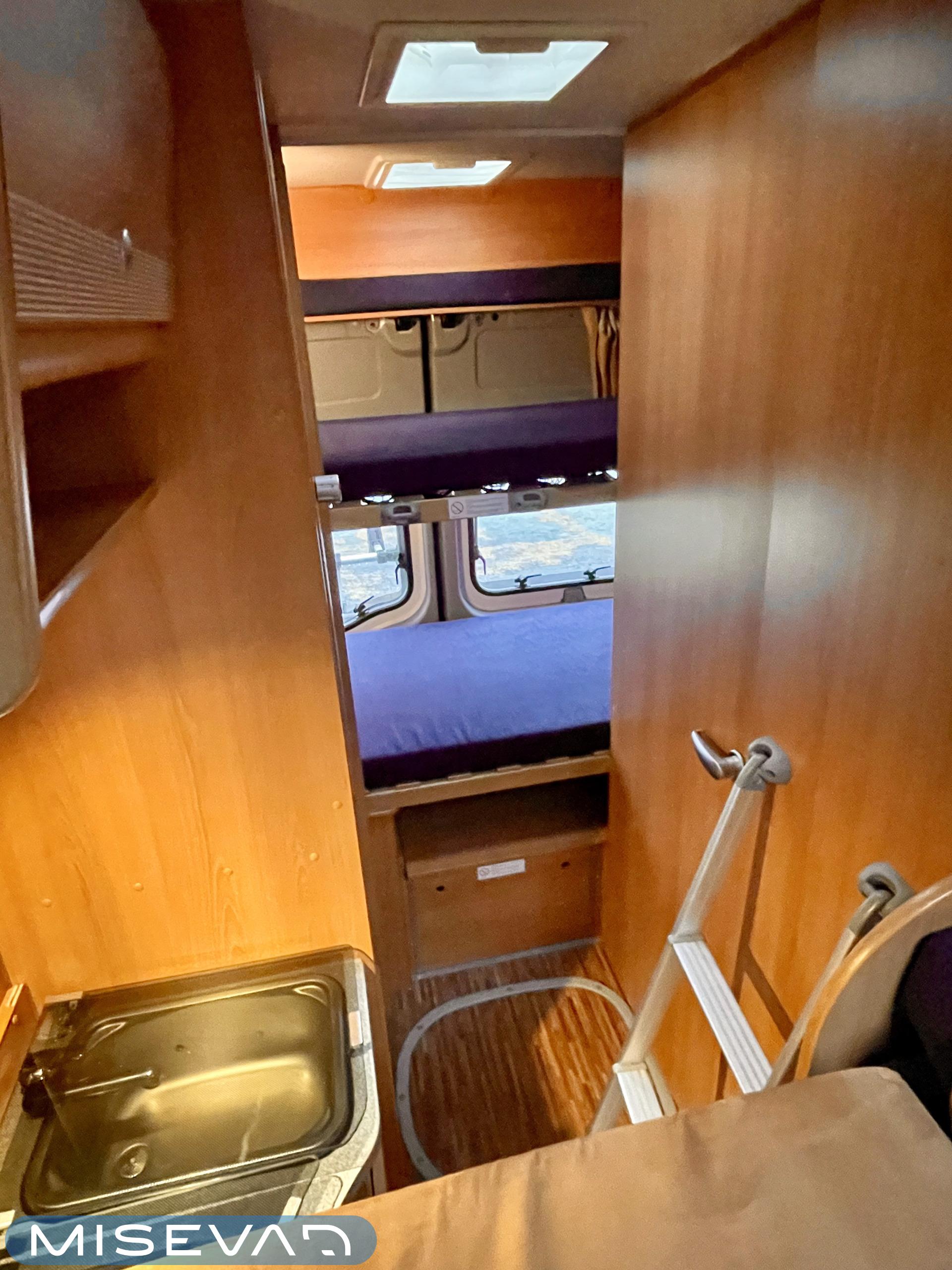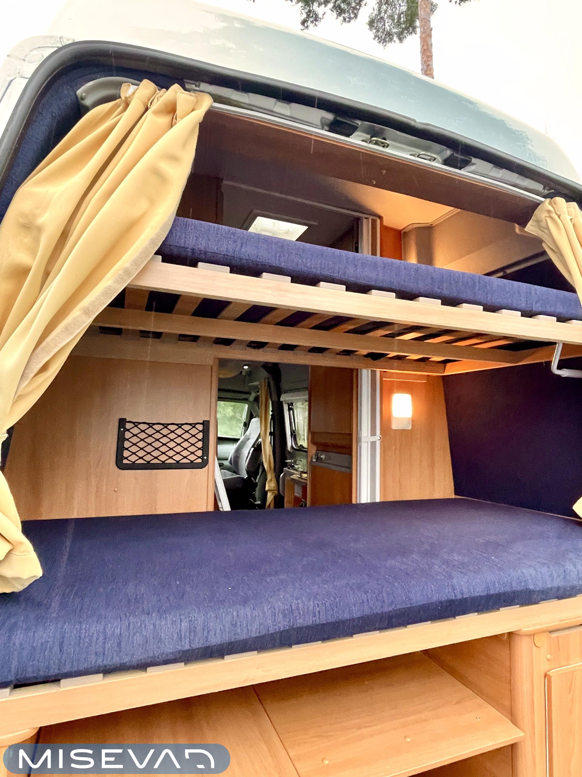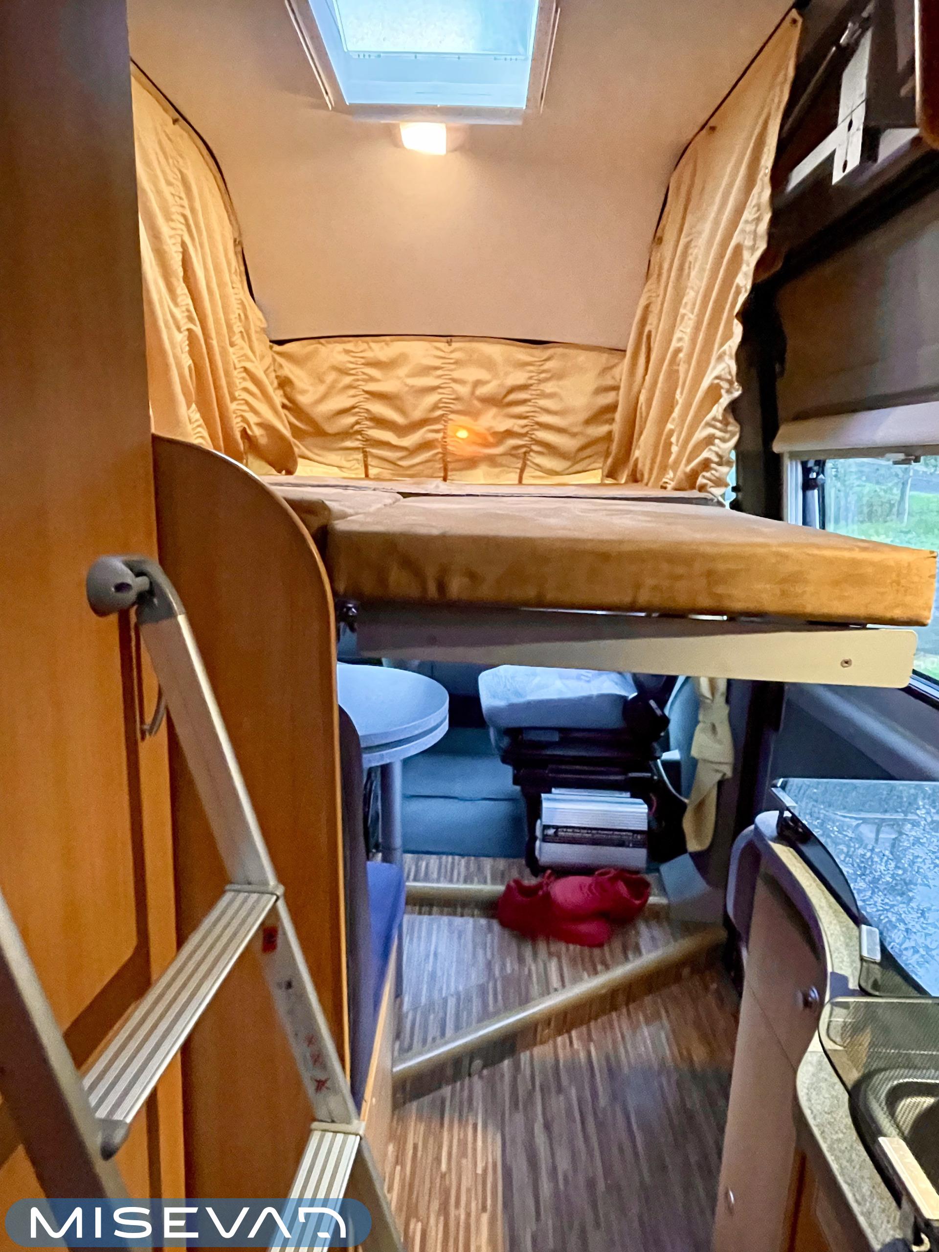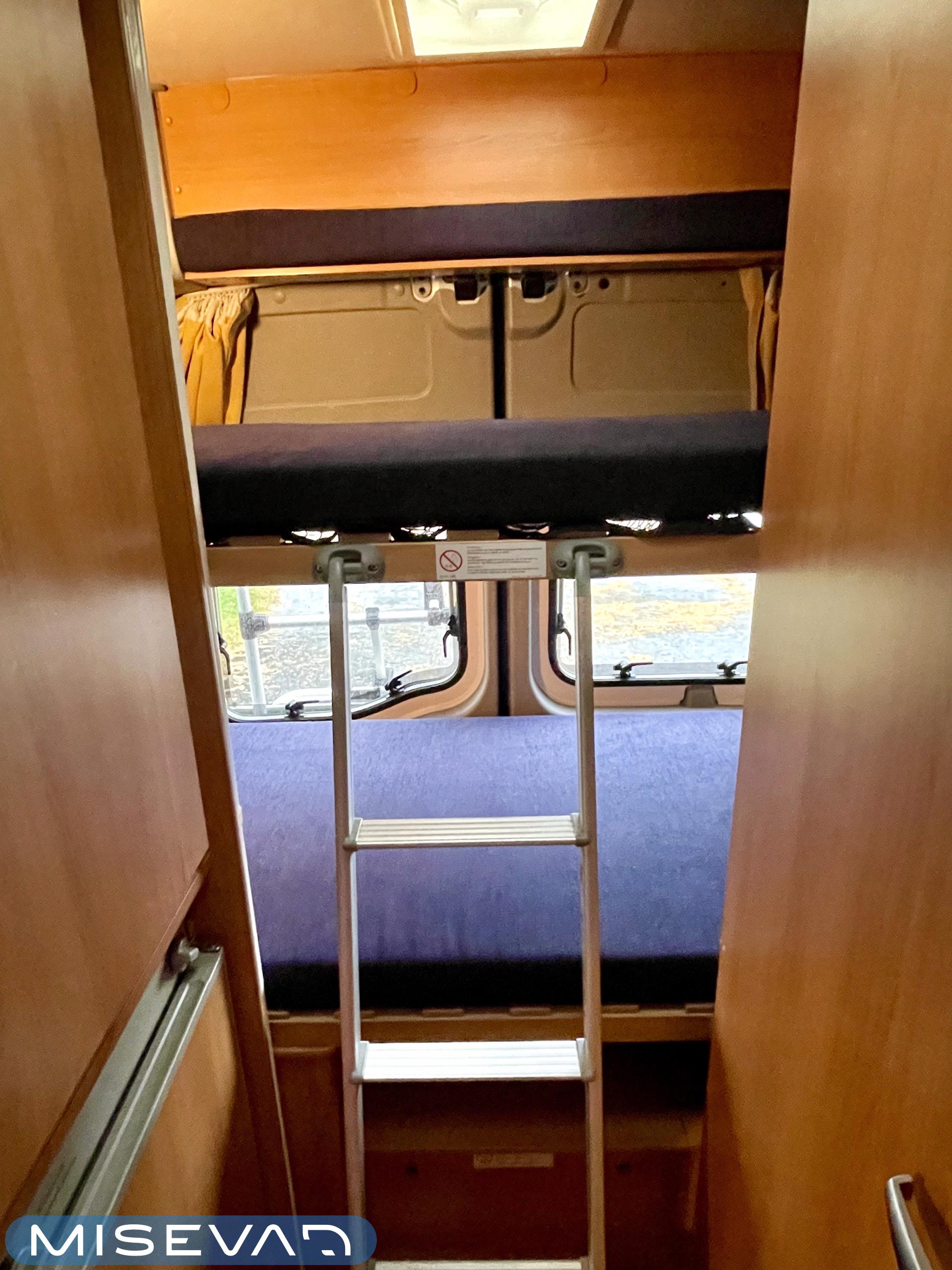 Näyttävä erillivuoteinen matka-auto suurella takatallilla. Edessä avara istuinryhmä sivusohvalla ja kääntyvillä etuistuimilla. Pöytäryhmään mahdollista sijata vuode kahdelle. Keskellä pesuhuone, jossa suihku sekä keittiö. Takana tilavat erillisvuoteet, jotka yhdistettävissä tarpeen mukaan. Takavuoteen alla suuri takatalli, jossa luukut molemmin puolin autoa.