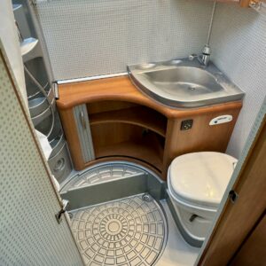 Keittiösaareke ja pesuhuone/ WC sijaitsevat auton keskivaiheilla.