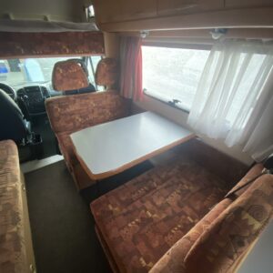 Hiljattain katsastettu matkakumppani odottaa uutta käskyttäjää. Ajomäärähän on hyvinkin maltillisella tasolla (88tkm) ja pinnat on ikäisekseen niin sisällä kun ulkonakin ihan OK oloisessa kunnossa. Auton takaosassa on keittiö, sekä WC/kylpyhuonetilat. Oleskelutilassa on vastakkain istuttava pöytäryhmä, sekä leveä sivusohva. Ohjaamon päällä on alkovivuode kahdelle henkilölle. Makuutiloja auto tarjoaa viidelle, kun pöytäryhmä saadaan muutettua parivuoteeksi. Trumatic ilmakeskuslämmitys mikä on todettu toimivaksi kaasulla.