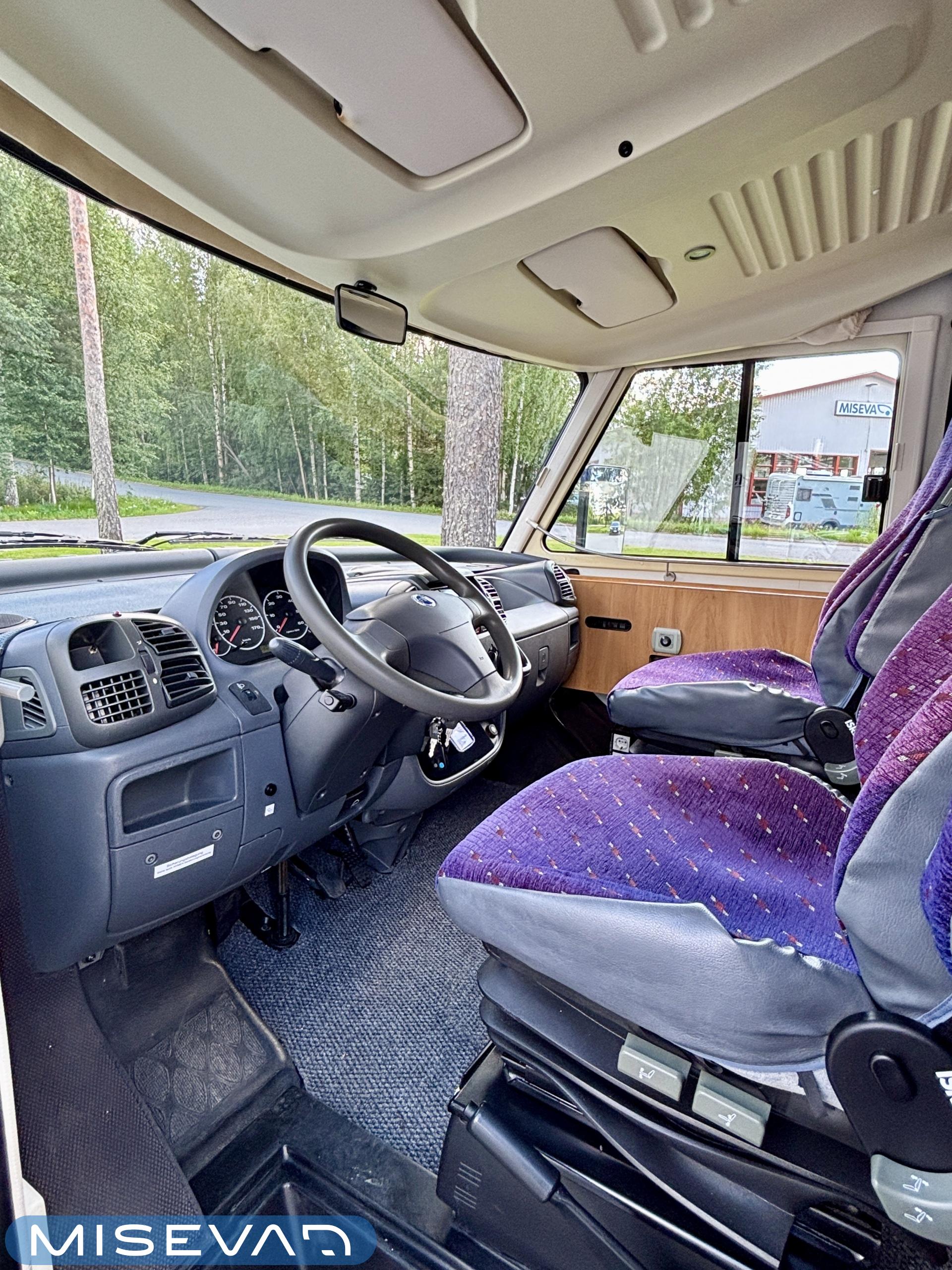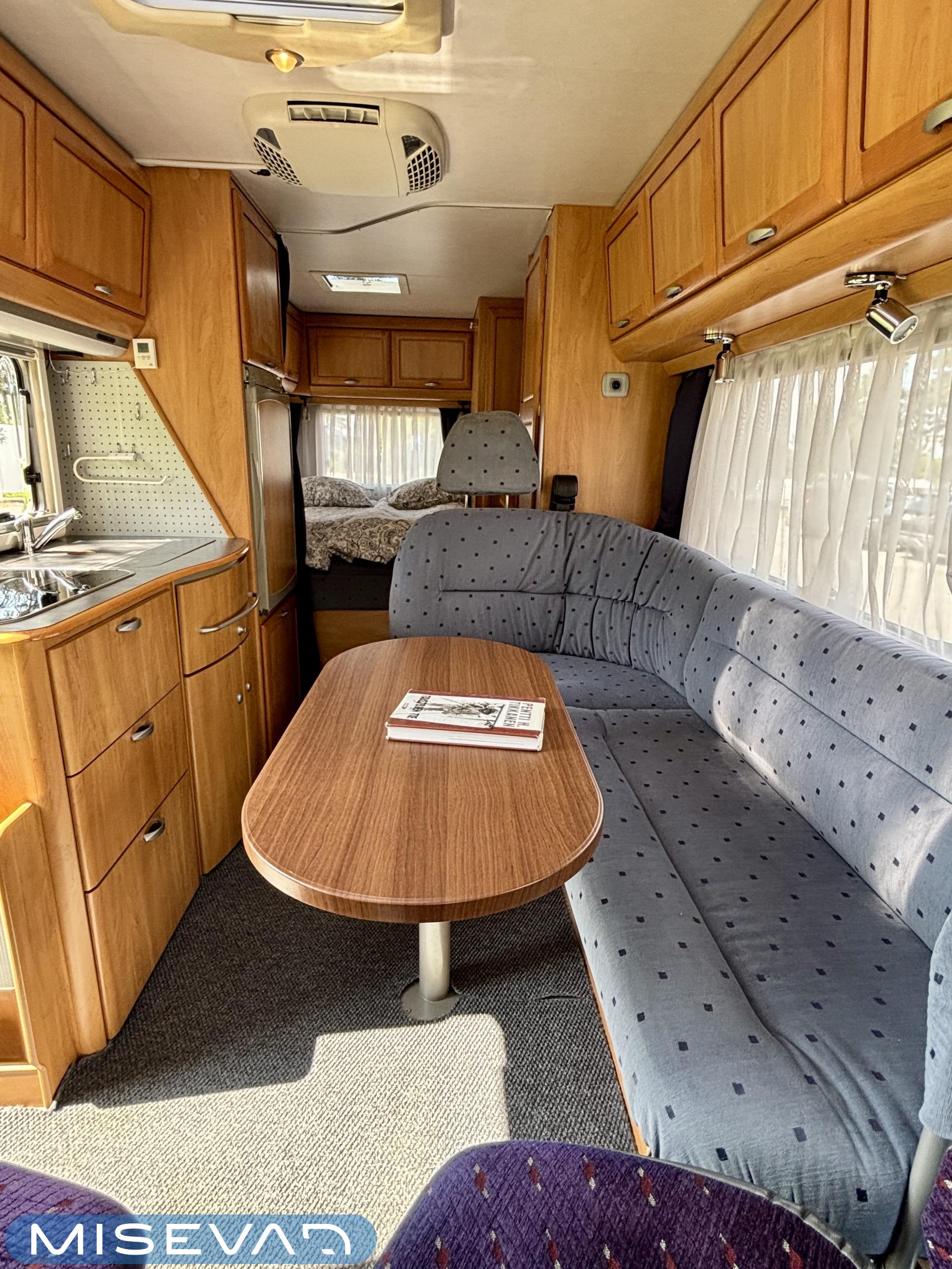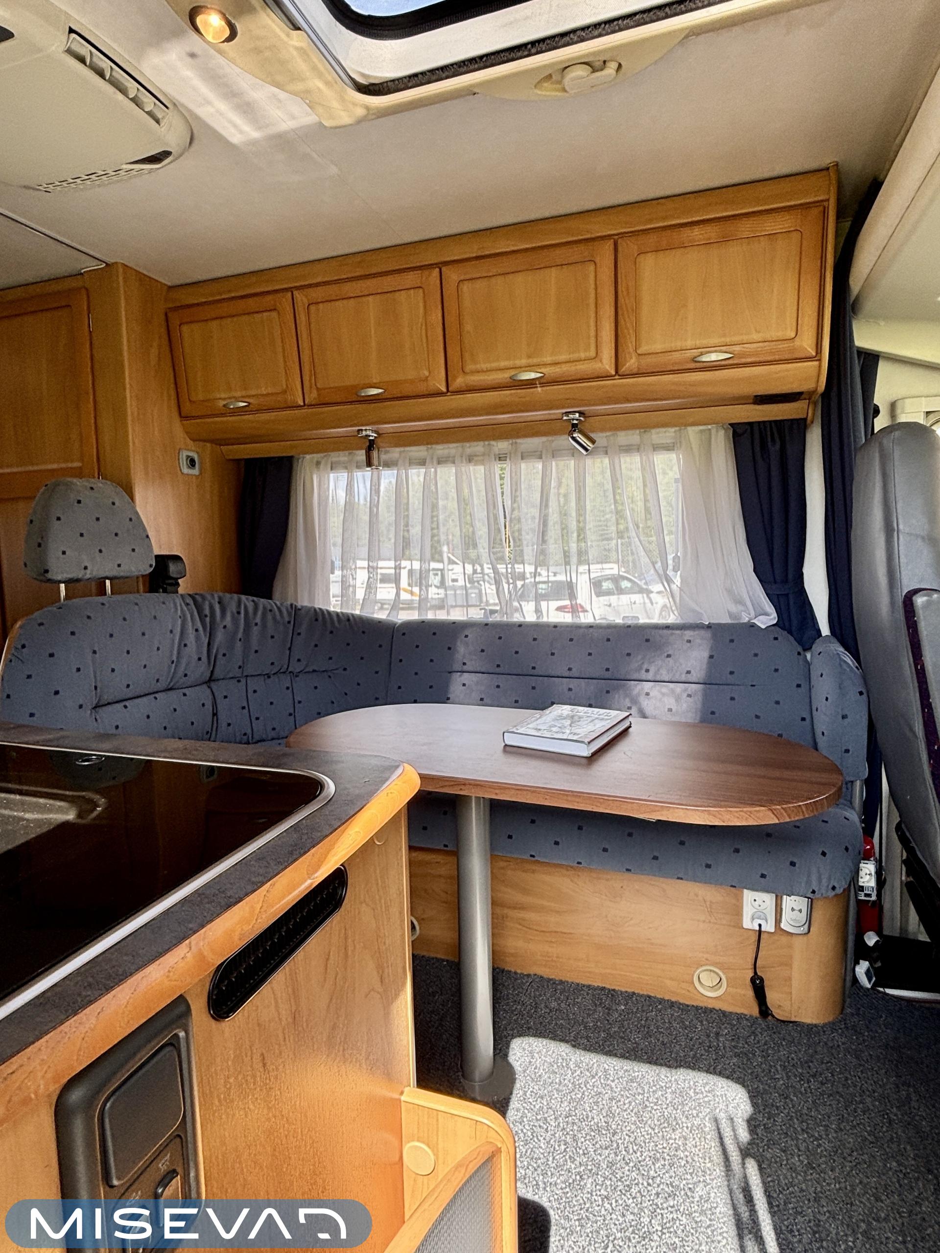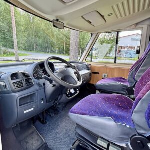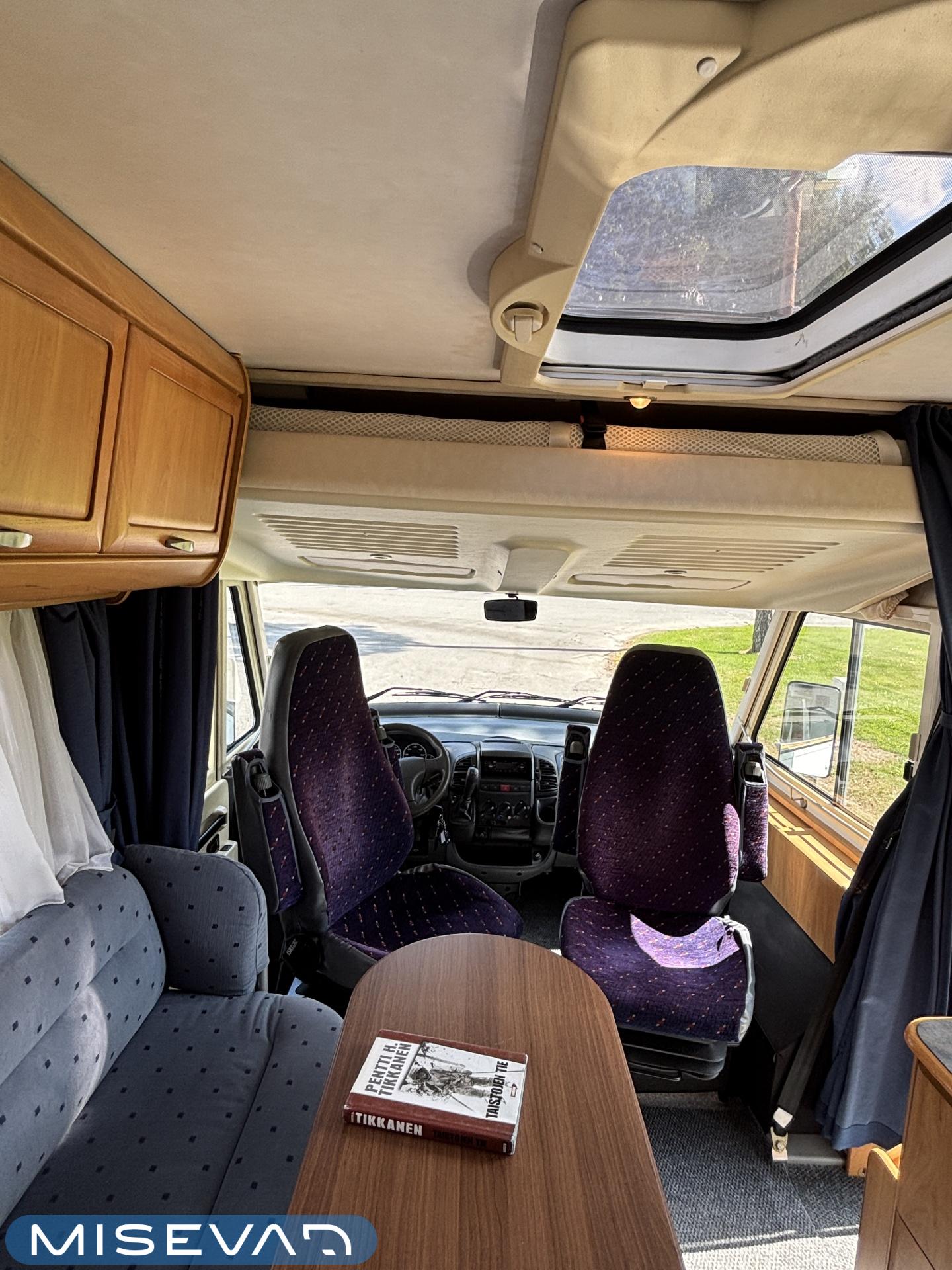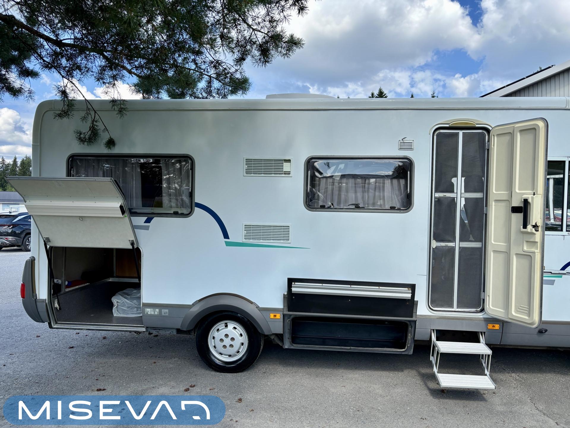 Nyt tarkistettu hintaa asiakas ystävällisemmäksi, eli tästä edullisemmin harvinaisempaa herkkua. Nimittäin tämän ikäkauden matkailuauto AUTOMAATTIVAIHTEISTOLLA varustettuna. Tämä on todellakin ZF:än valmistamalla ”aidolla” momentinmuunnin automaatilla varustettu auto. Moottorina on 2.8 litratilavuuden omaava turbodiesel ja korivalmistajana laadustaan tunnettu Saksalainen Hymer. Ovesta sisään tultaessa olemme heti ”tupakeittiössä” missä on L-sohva ja samaan rinkiin liittyvät kääntyvät ohjaamon penkit. Tähän saa useammankin henkilön illanistujaiset aikaiseksi oikein mukavasti. Takaosa on ”makuuhuonetta” ja sen välittömässä läheisyydessä kylppäritilat. Edessä ohjaamon päällä on vielä laskuvuode mikä tarjoilee petipaikat kahdelle reissaajalle. Vaikka auto on matalalla parivuoteella varustettu, niin silti vuoteen alle jää oikeinkin runsaat säilytystilat, voisiko jopa takatalliksi melkein mainostaa. Lämmitysjärjestelmänä on Trumaticin tehokkain malli, eli pannussa on potkua 6kw. verran. Vetokoukku (1700/750kg), aurinkopaneeli ja asuinosaan ilmastointilaite (230v. toimiva). Autolla ollut vain 3 käyttäjäomistajaa, joista viimeisimmän käytössä 10 vuotta. Auton historia on tallennettu tarkasti ja huoltohistoria moitteeton. Alusta on esimerkiksi ruostesuojattu useamman kerran historiansa aikana.