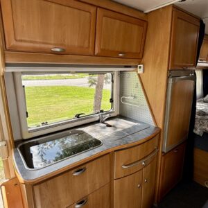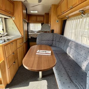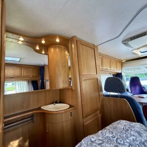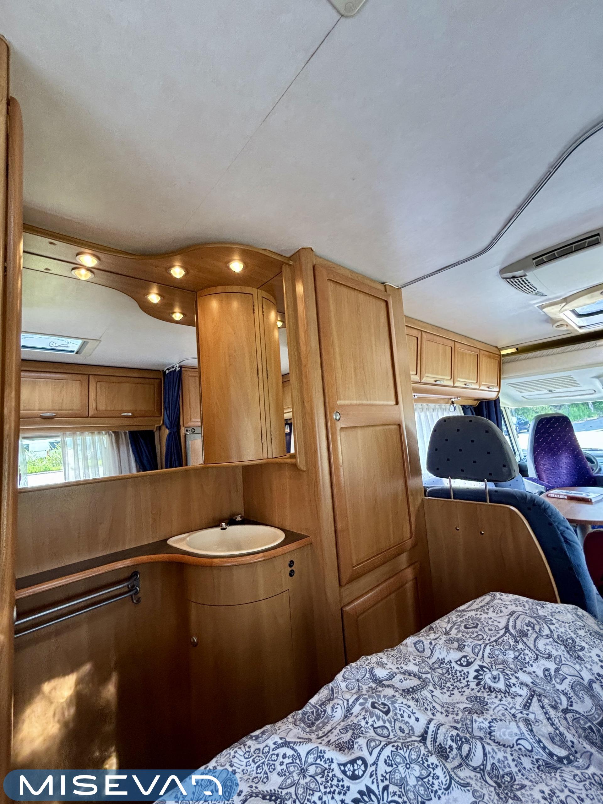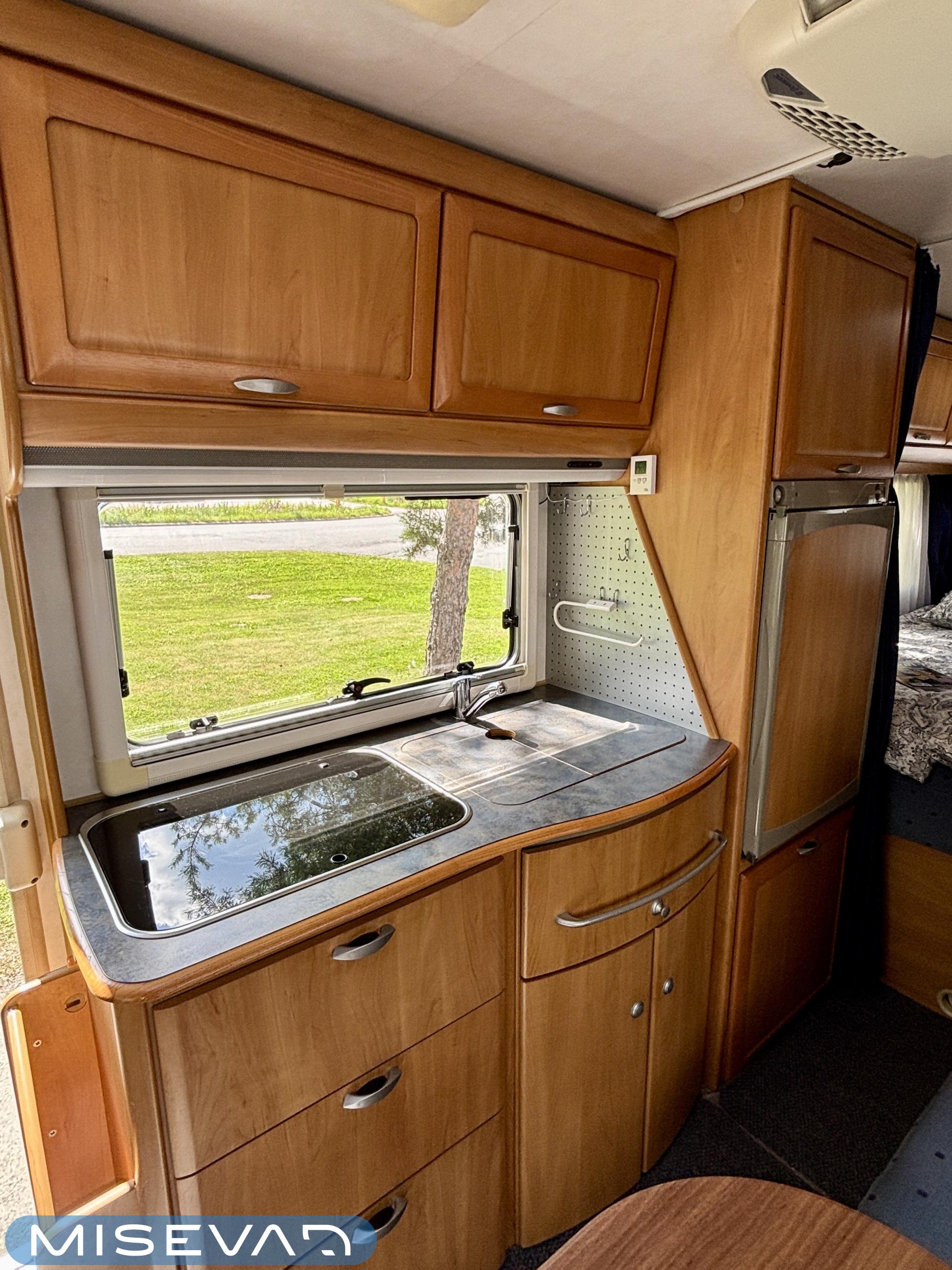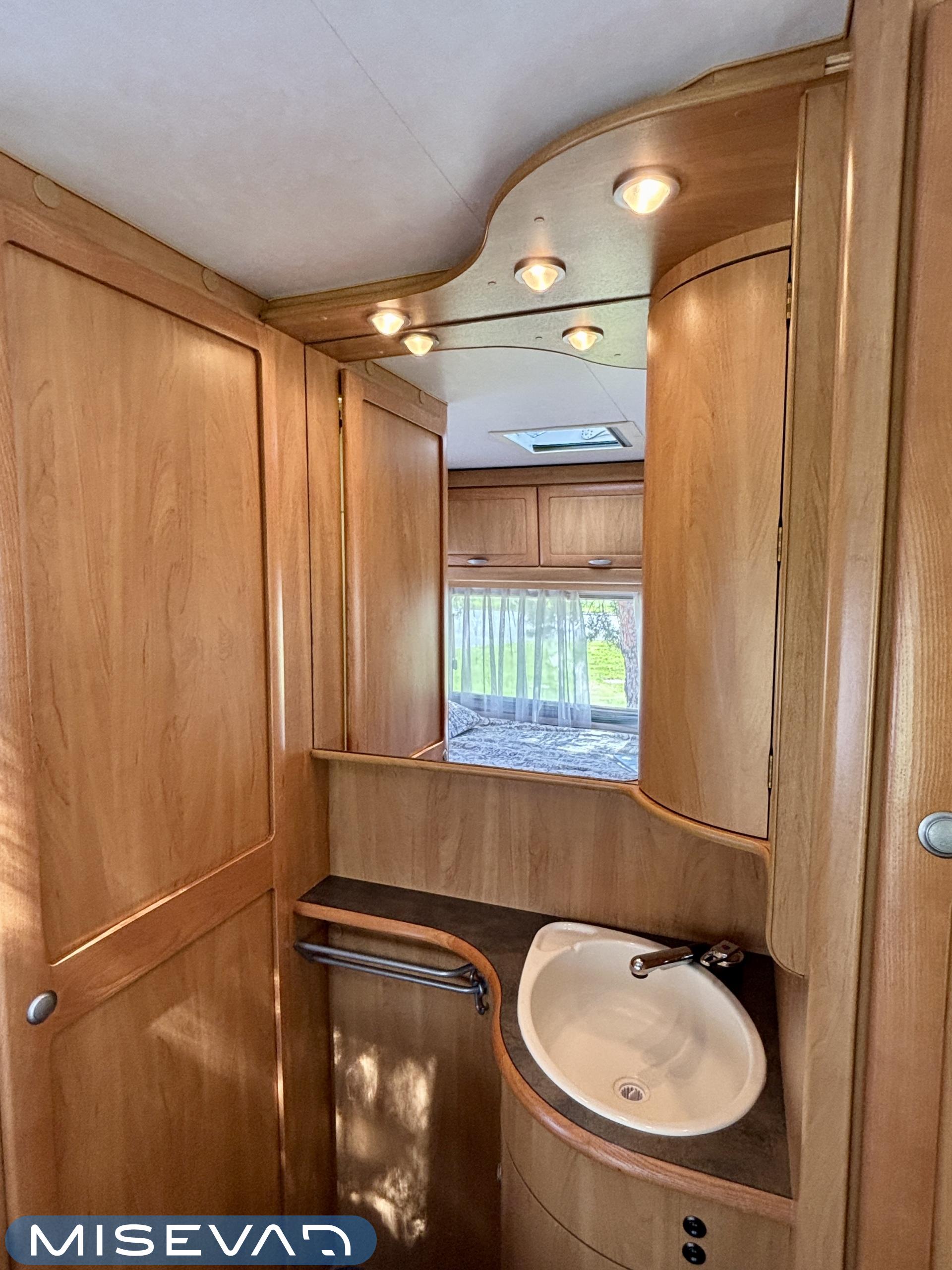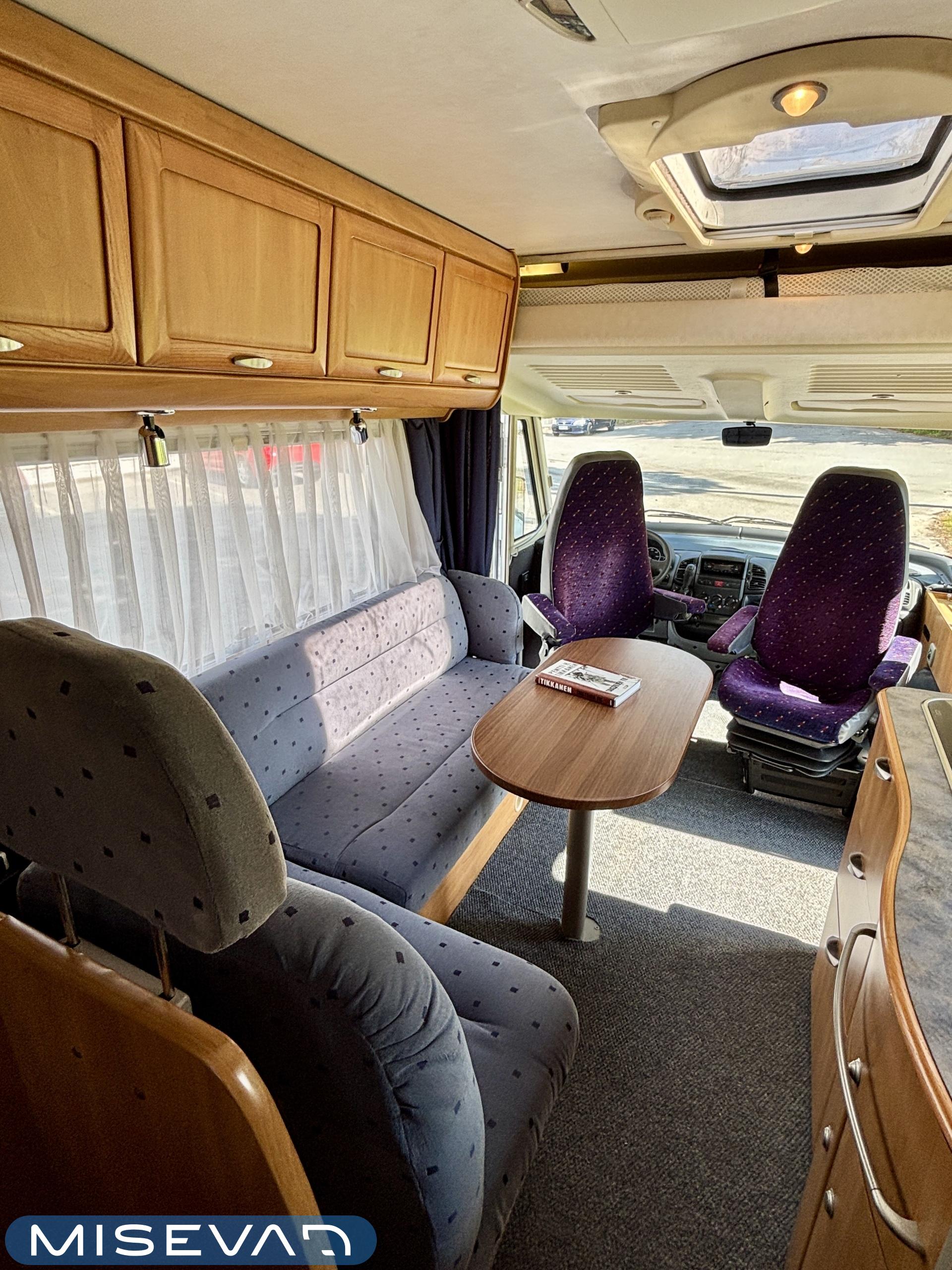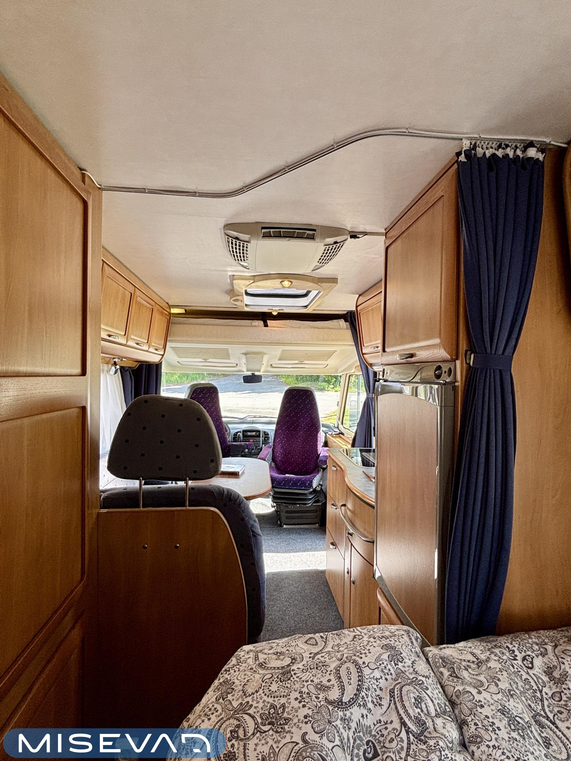 Nyt tarkistettu hintaa asiakas ystävällisemmäksi, eli tästä edullisemmin harvinaisempaa herkkua. Nimittäin tämän ikäkauden matkailuauto AUTOMAATTIVAIHTEISTOLLA varustettuna. Tämä on todellakin ZF:än valmistamalla ”aidolla” momentinmuunnin automaatilla varustettu auto. Moottorina on 2.8 litratilavuuden omaava turbodiesel ja korivalmistajana laadustaan tunnettu Saksalainen Hymer. Ovesta sisään tultaessa olemme heti ”tupakeittiössä” missä on L-sohva ja samaan rinkiin liittyvät kääntyvät ohjaamon penkit. Tähän saa useammankin henkilön illanistujaiset aikaiseksi oikein mukavasti. Takaosa on ”makuuhuonetta” ja sen välittömässä läheisyydessä kylppäritilat. Edessä ohjaamon päällä on vielä laskuvuode mikä tarjoilee petipaikat kahdelle reissaajalle. Vaikka auto on matalalla parivuoteella varustettu, niin silti vuoteen alle jää oikeinkin runsaat säilytystilat, voisiko jopa takatalliksi melkein mainostaa. Lämmitysjärjestelmänä on Trumaticin tehokkain malli, eli pannussa on potkua 6kw. verran. Vetokoukku (1700/750kg), aurinkopaneeli ja asuinosaan ilmastointilaite (230v. toimiva). Autolla ollut vain 3 käyttäjäomistajaa, joista viimeisimmän käytössä 10 vuotta. Auton historia on tallennettu tarkasti ja huoltohistoria moitteeton. Alusta on esimerkiksi ruostesuojattu useamman kerran historiansa aikana.