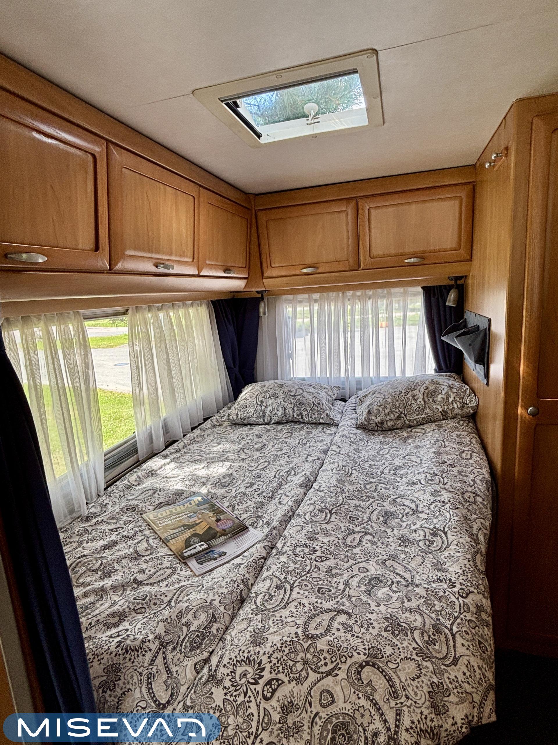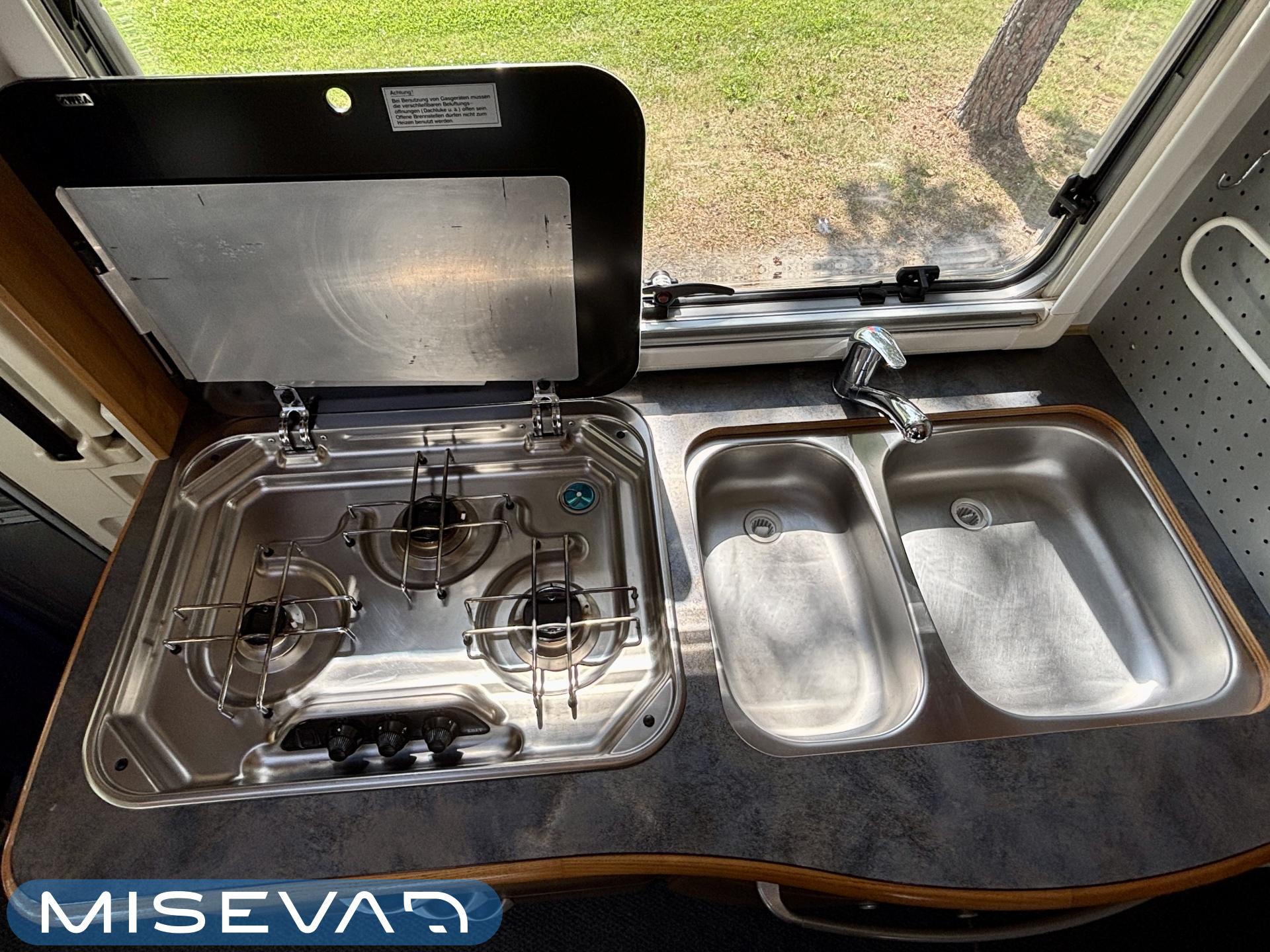 Truma, Aurinkopaneeli, Eristetty harmaavesisäiliö, Jääkaappi, Kasetti WC, Kasettiverhot, Kattoluukku, Lattiamatot asunto-osassa, Liesi, Lämminvesiboileri, Ohjaustehostin, Pakastelokero, Parivuode, Pesuallas, Radio, Suihku, Sähkörappu, Turbo, Vetokoukku, Ilmastointi (asuintila), Webasto/Eber, Kesärenkaat, Invertteri, laskuvuode, pullonvaihtaja