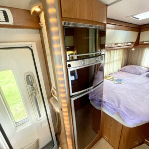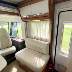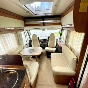 7 m kokonaispituus mahdollistaa avarat sisätilat. Auton etuosassa on viihtyisä vaalealla kankaalla verhoiltu L- istuinryhmä. Kääntyvien etuistuinten ja sivusohvan ansiosta pöydän ympärille mahtuu mukavasti isompikin seurue maailman menoa taivastelemaan.