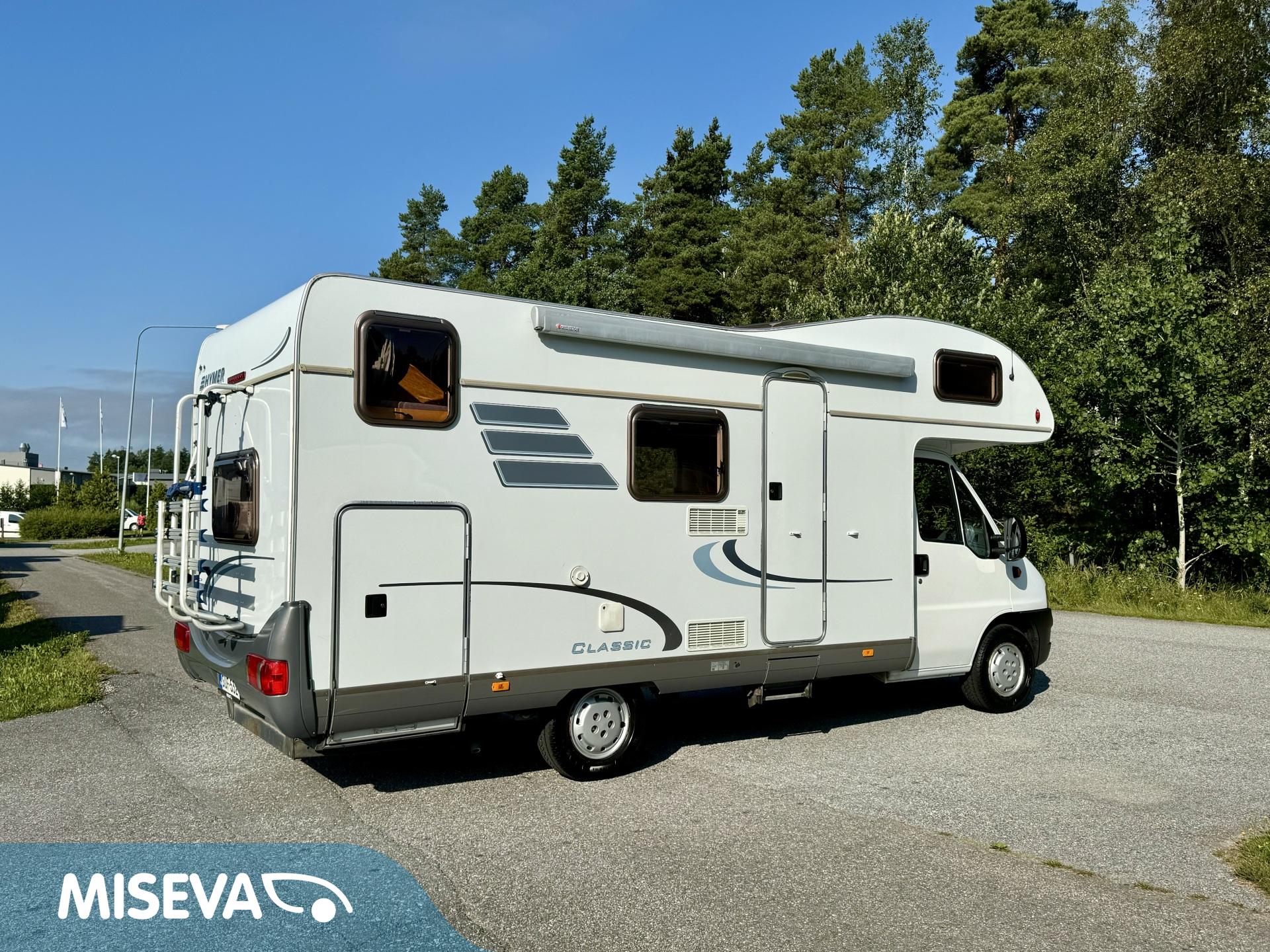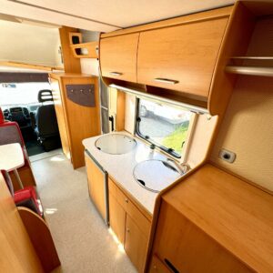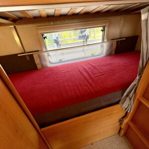 Erittäin siistikuntoinen ilmastoitu perhemalli 6:lle matkustajalle kerrosvuoteilla. Edessä iso parivuode ylhäällä ja valoisa istuinryhmä alhaalla. Sivussa korkea vaatekaappi. Keskellä keittiö ja tilava pesuhuone erillisellä suihkutilalla. Takana kerrosvuoteet, joiden alla suuri tavaratila. Alempi vuode nostettavissa pystyyn, jolloin tavaratila suurenee.