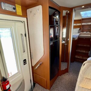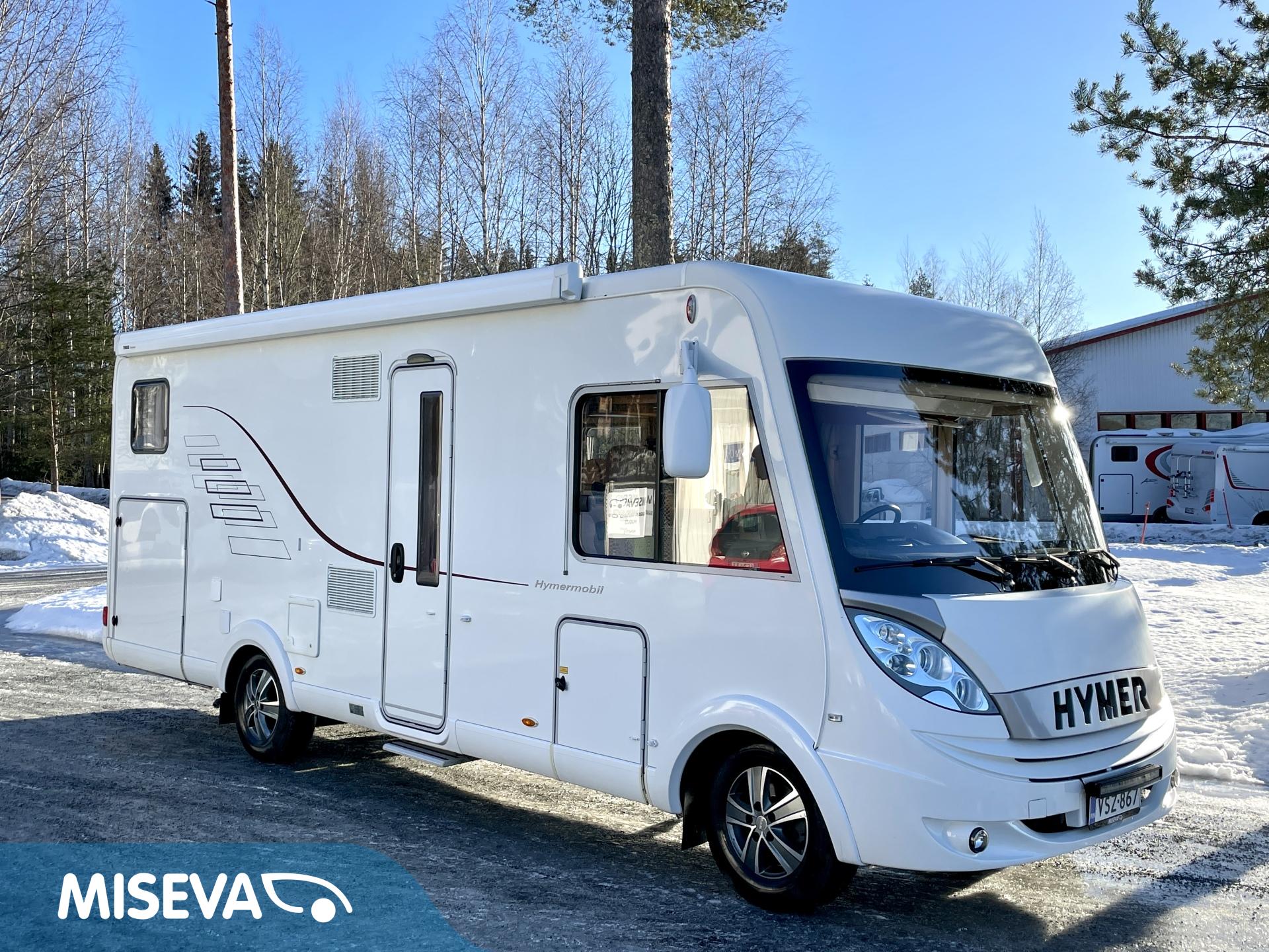 On sitten upea Hymerin täysintegroitu matkailuauto todella tilavalla takatallilla. Ihan mukavasti varusteltukin. Takana on pitkittäiset erillisvuoteet ja tämän kompleksin alle jää huikeasti säilytystiloja niin ulkopuolelta, kun sisäpuoleltakin käytettäväksi. Ison takatallin oviaukkojen mitat ovat kork. 114cm ja lev. 110cm, sekä vapaa korkeus sisällä 120cm ja tietysti läpilastattavana mallina. Tallissa on myös erilliset hyllyköt tavaroiden säilyttämiselle. Auton keskiosaa hallitsee WC/kylpyhuonetilat ja suihkulle on oma erillinen tilansa. L-keittiö on herkuteltu isolla jääkaapilla ja erillisellä pakastinlokerolla. Ja kaiken kruunaa tietysti kaasu-uuni. Etuosan katseenvangitsijana toimii muhkea kulmasohvaryhmä erillisellä sivusohvalla ja kääntyvillä ohjaamon penkeillä. Tässä parantelee maailmaa helposti 5-6 henkilöä. Ohjaamon päältä laskeutuu vuode kahdelle henkilölle. Auton kaksoispohja ja Alden nestekeskuslämmitys tekee tästä ihanteellisen myös talvimatkailuun. Järjestelmästä löytyy myös lämmönvaihdin ominaisuus. Katolla olevat pari aurinkopaneelia ruokkii välipohjassa olevia tupla-akkuja, eli virtaakin pitäisi riittää suht hyvin. Tuulilasin pimennysverho on sähkötoiminen. Paljon jää tässä vielä kertomatta, joten tule ihmeessä tutustumaan autoon paikan päälle. HUOM. vaatii vähintään C-1 ajokorttiluokan ajoluvan (kok.paino 4250kg)