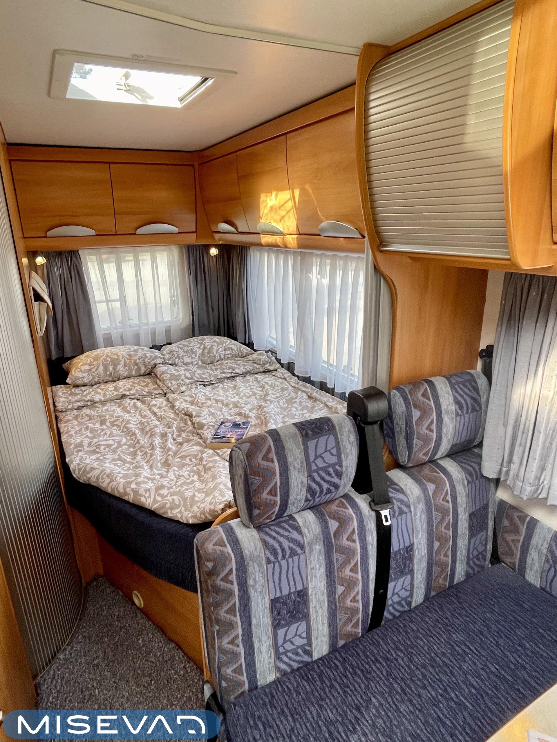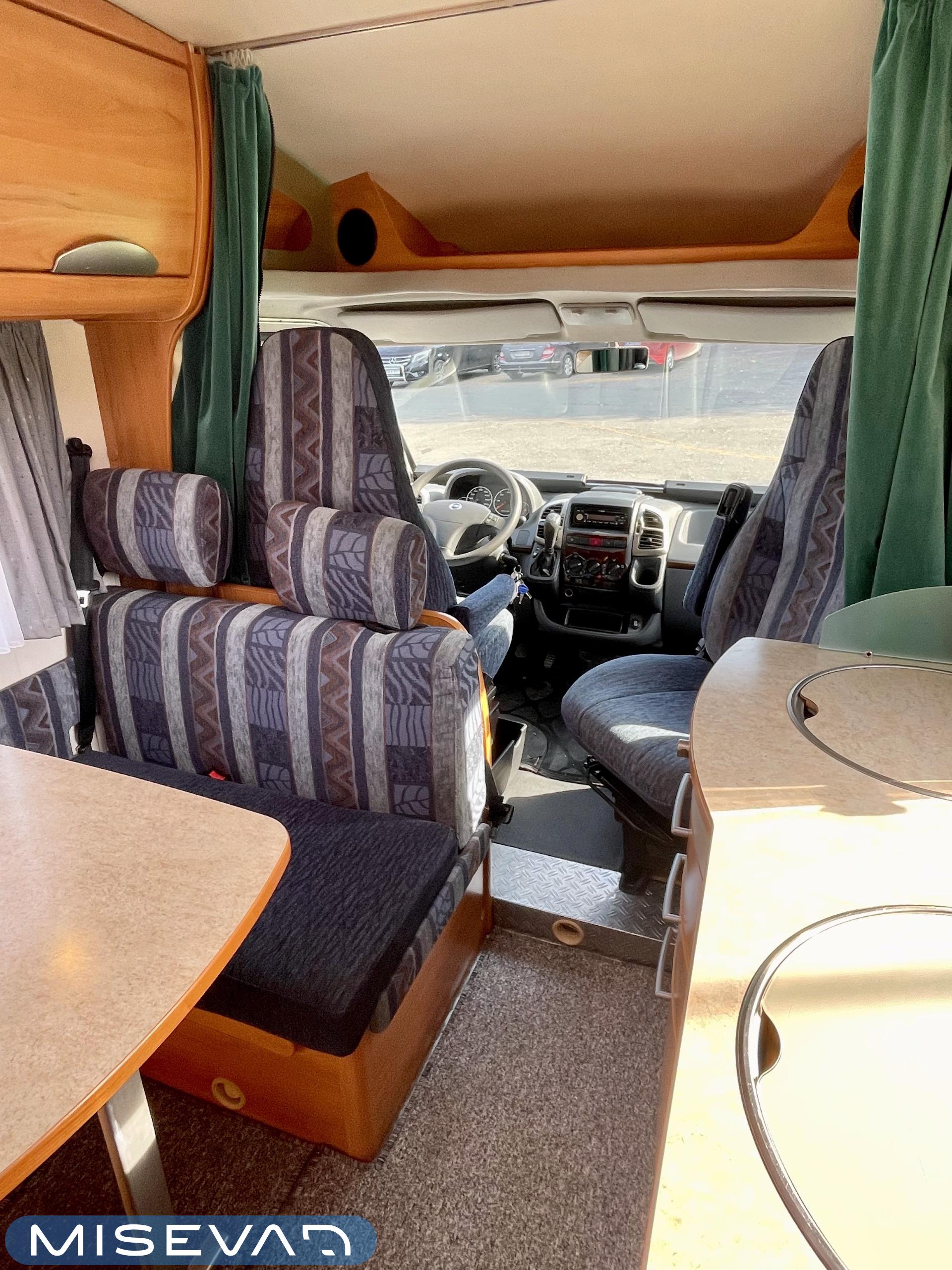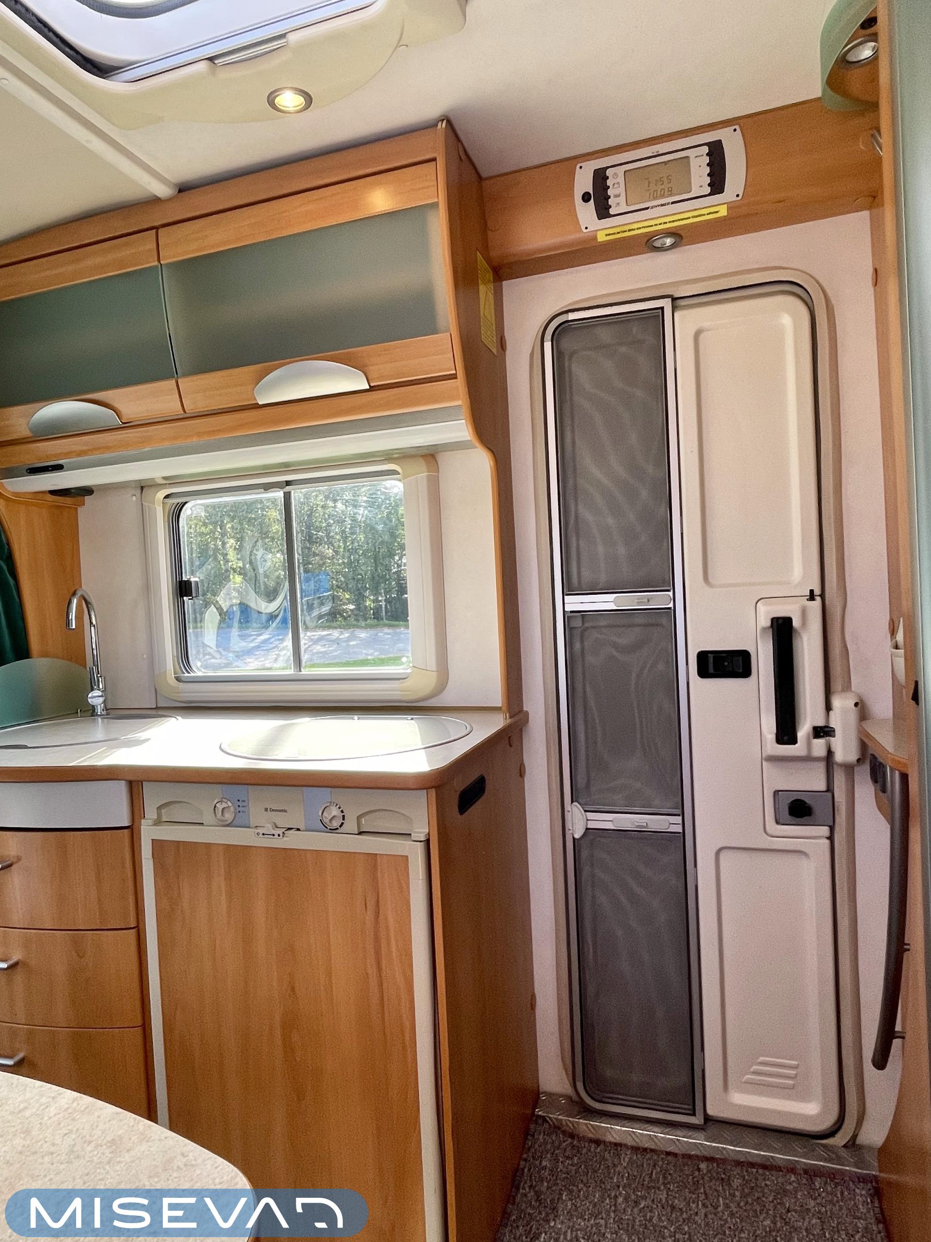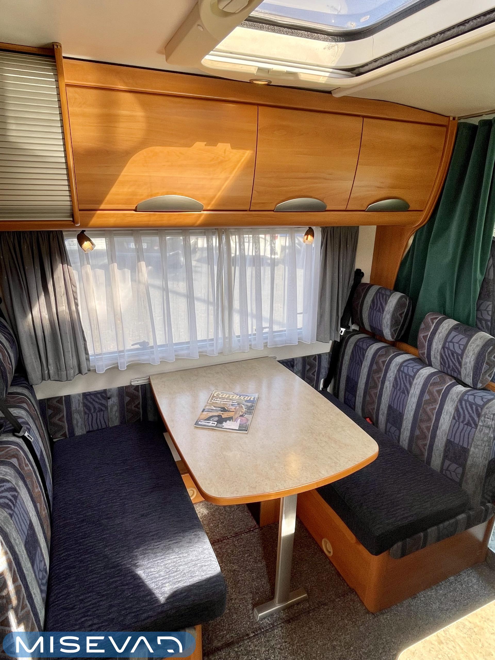 Huoltokirja, Ilmastointi ajotilassa, Jääkaappi, Kasetti WC, Kasettiverhot, Kattoluukku, Lattialämmitys, Lattiamatot asunto-osassa, Liesi, Lämminvesiboileri, Ohjaustehostin, Pakastelokero, Parivuode, Pesuallas, Pyöräteline, Radio, Suihku, Sähköpatruuna, Sähkörappu, Trumatic, TV-antenni tai lautasantenni, kwh-mittari, liesituuletin