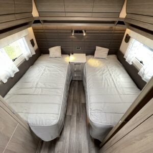 Upea vaaleansävyinen ja ilmastoitu Ametist tarjoaa matkailuun tyylikkäät ja viimeistellyt puitteet. Sähkösäädettävät erillisvuoteet takaavat mukavat unet, ja hyvin varustellusta keittiöstä löytyvät iso jääkaappi, mikroaaltouuni, liesi sekä kätevä kaasun ulosotto ulkogrilliä varten. Tilava U-ryhmä luo viihtyisän oleskelutilan illanviettoihin, ja kotelomarkiisi tuo lisää nautintoa kesäisiin hetkiin ulkona. Tämä vaunu yhdistää käytännöllisyyden ja mukavuuden upealla tavalla ja on valmis seuraaville seikkailuille.