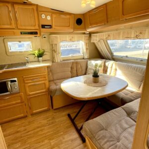 Alde, Erikoisvanteet, Erillisvuoteet, Jääkaappi, Kasetti WC, Kasettiverhot, Kattoluukku, Lattialämmitys, Liesi, Lämminvesiboileri, Markiisi, Mikroaaltouuni, Nestekiertolämmitys, Pakastelokero, Pesuallas, Sähköpatruuna, TV-antenni tai lautasantenni, Tukijalat, Lattialämmitys (nestekierto), kwh-mittari, harmaavesisäiliön lämmitys, kaasun ulosotto, sähkön ulosotto