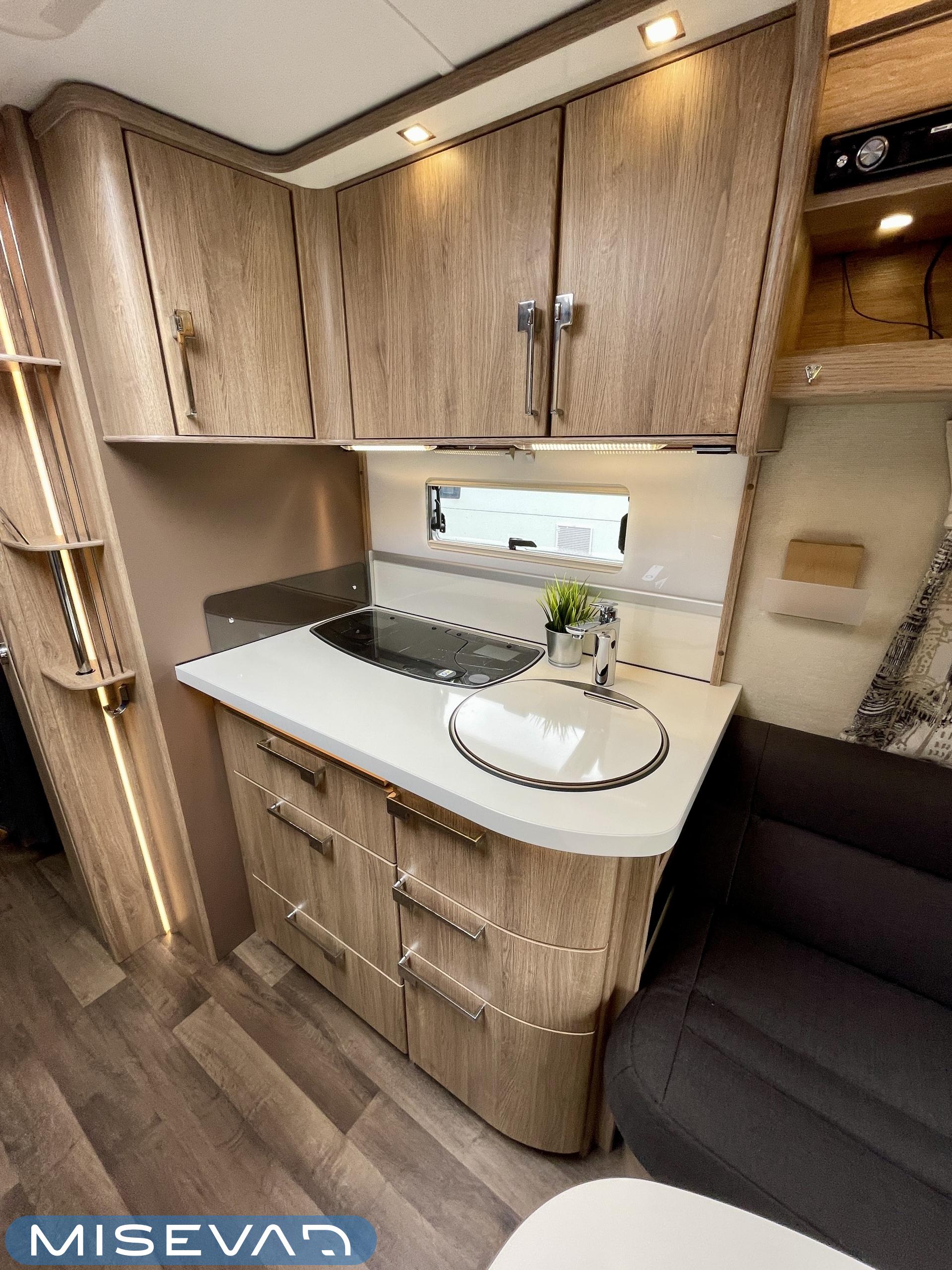 Alde, CD-soitin, Erikoisvanteet, Erillisvuoteet, Eristetty harmaavesisäiliö, Jääkaappi, Kasetti WC, Kasettiverhot, Kattoluukku, Lattialämmitys, Liesi, Lämminvesiboileri, Markiisi, Nestekiertolämmitys, Pakastelokero, Pesuallas, Sähköpatruuna, TV-antenni tai lautasantenni, Tukijalat, Lattialämmitys (nestekierto), kwh-mittari, harmaavesisäiliön lämmitys, jenkkijääkaappi, liesituuletin, kaasun ulosotto, sähkön ulosotto, Asuinosan hyttysovi/verho, Kotelomarkiisi