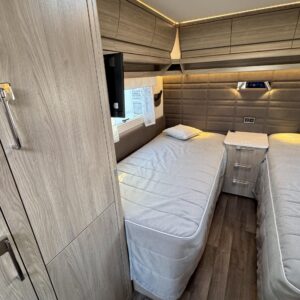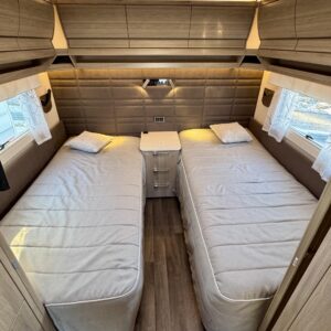 Alde, Erillisvuoteet, Jääkaappi, Kattoluukku, Kasettiverhot, Kasetti WC, Lattialämmitys, Lattiamatot asunto-osassa, Liesi, Lämminvesiboileri, Nestekiertolämmitys, Pakastelokero, Pesuallas, Sähköpatruuna, Suihku, TV-antenni tai lautasantenni, Tukijalat, Ilmastointi: Automaattinen