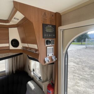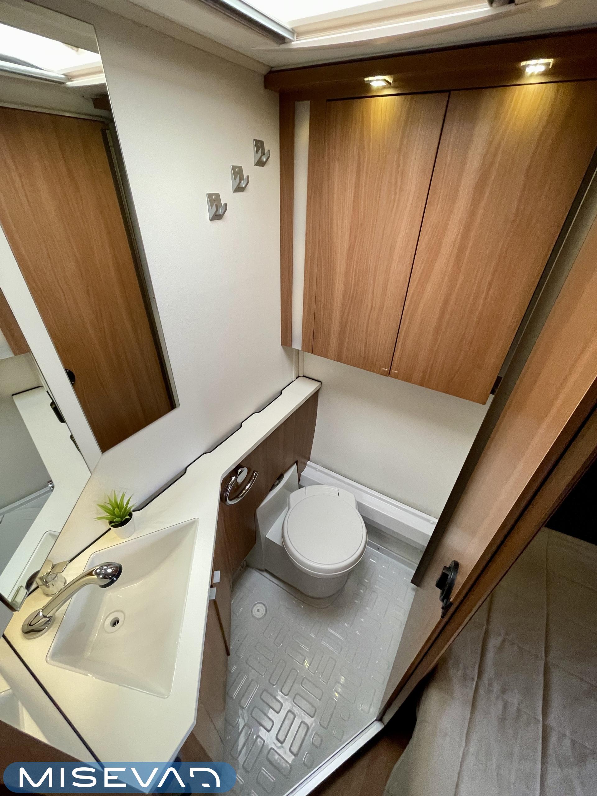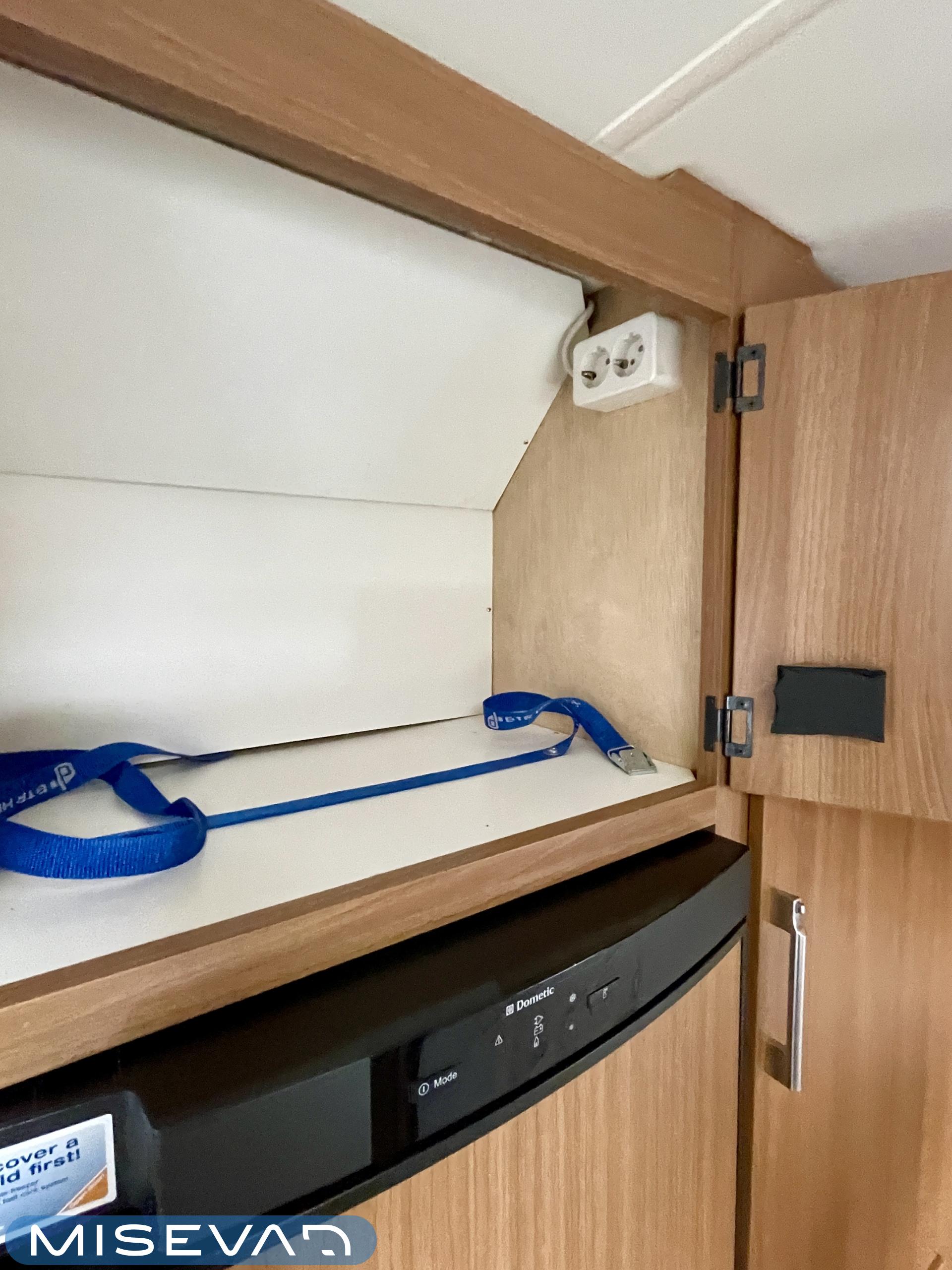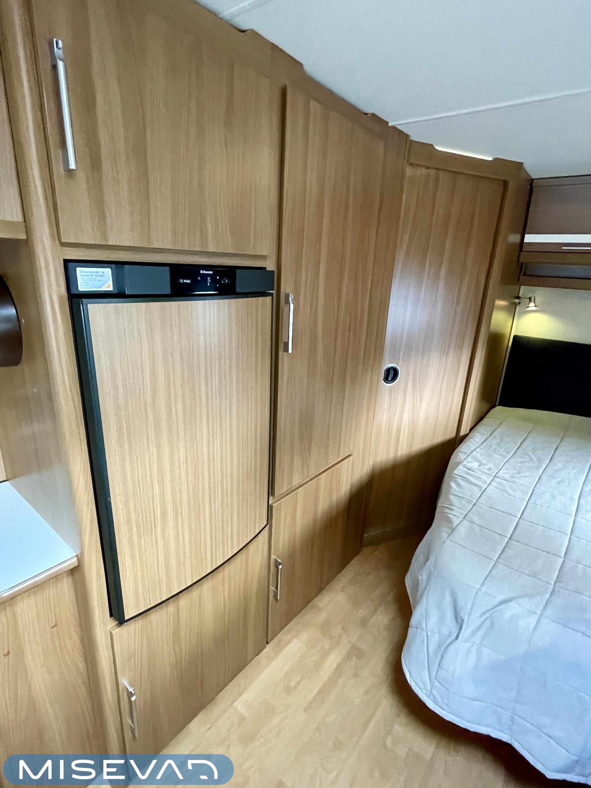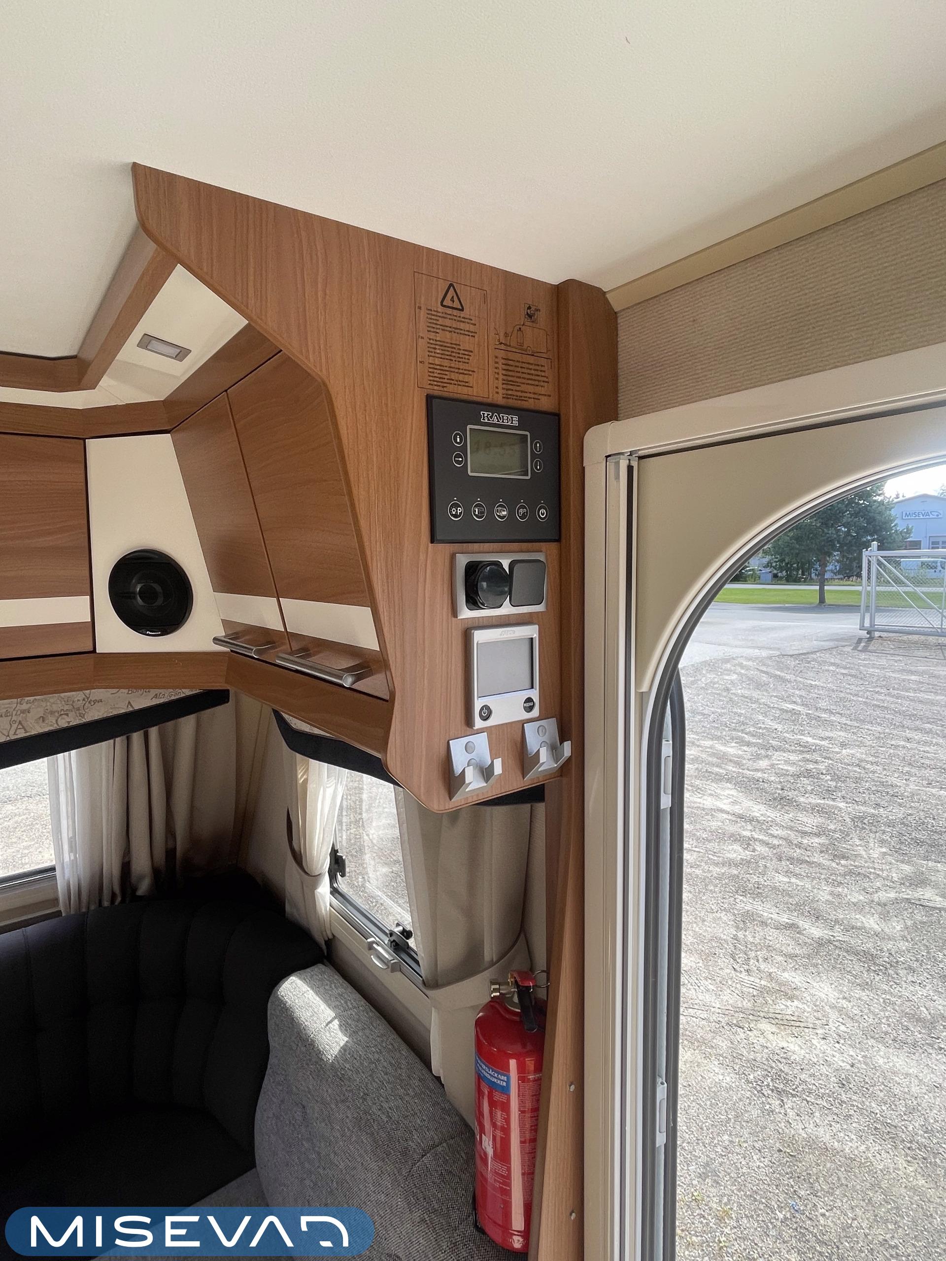 Alde, Jääkaappi, Kasetti WC, Kasettiverhot, Kattoluukku, Lämminvesiboileri, Liesi, Nestekiertolämmitys, Parivuode, Pesuallas, Markiisi, Suihku, Lattialämmitys, Radio, Sähköpatruuna, Tukijalat, kwh-mittari, televisioteline, Asuinosan hyttysovi/verho, Lattialämmitys (nestekierto)