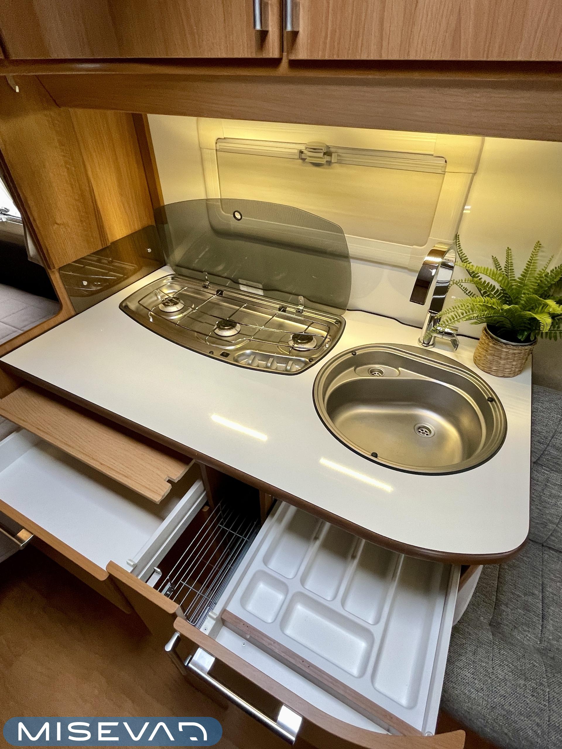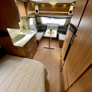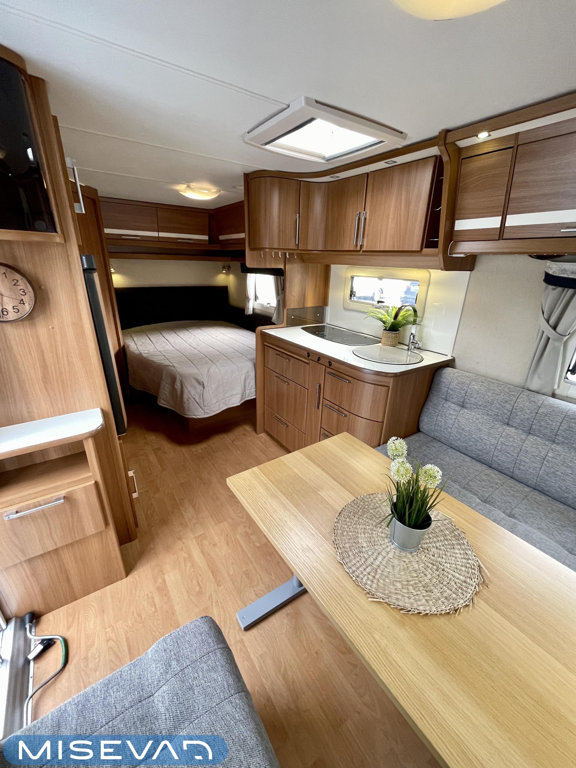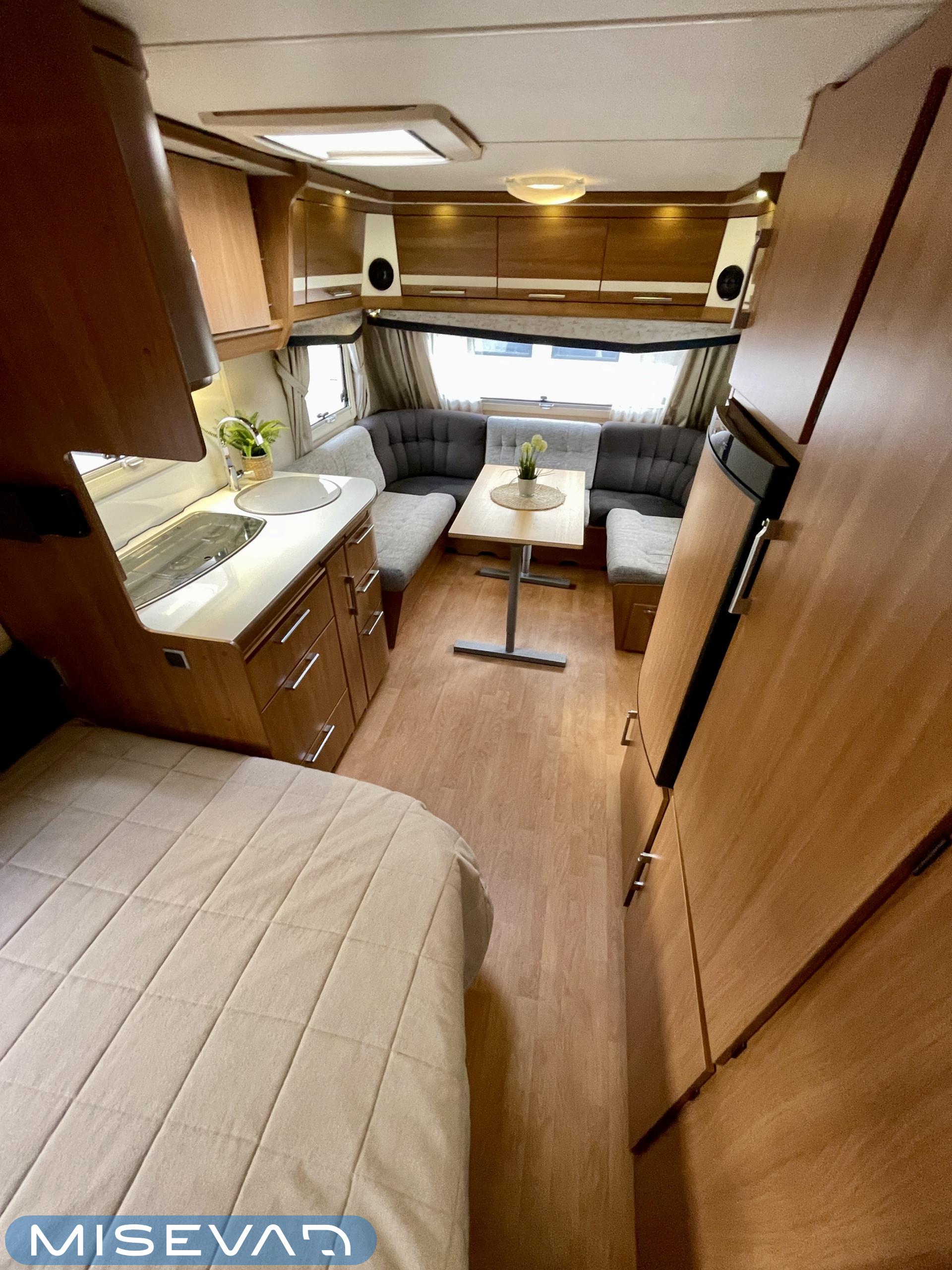 Kevyt ja helposti vedettävä vaunu, sopii mainiosti myös pienemmälle vetoautolle (kokonaismassa vain 1350 kg). Tilava ja avara tunnelma vastaa kuitenkin isompien vaunujen tasoa, myös eristeiltään.
