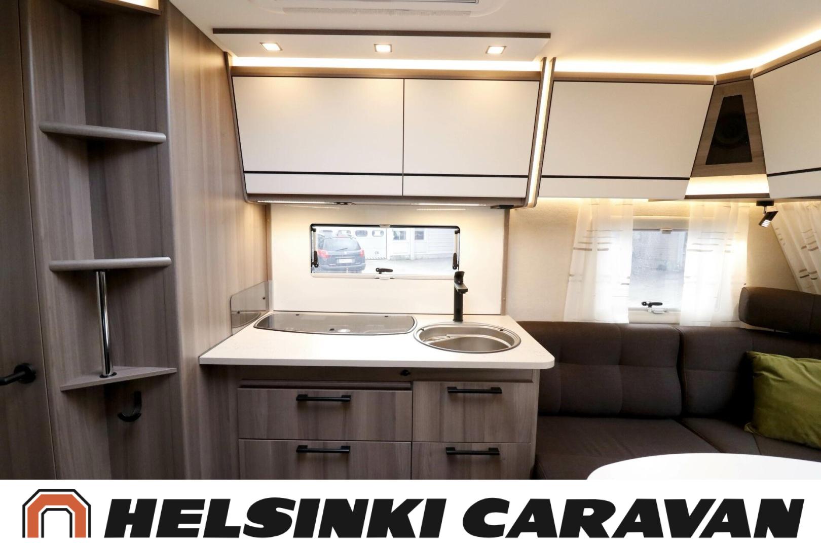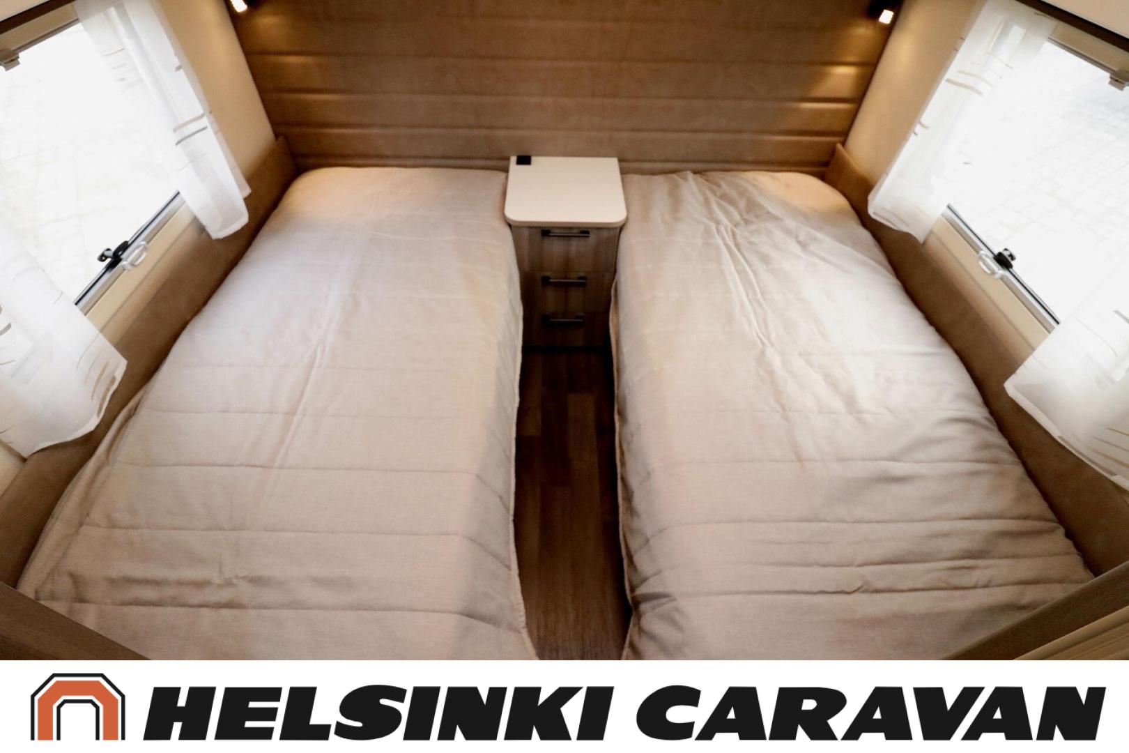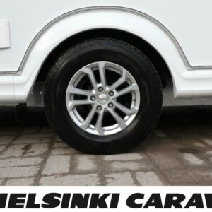 Perushinta 47.100,- tehdaslisävarusteena Design-paketti (aluvanteet 15″, Heki2-kattoikkuna, ikkunallinen ovi ja vetoaisan suojalevy) 2.013,- sekä mukavuuspaketti 1 (kompressorijääkaappi, pyyhekuivain, sähkötoiminen päänalunen, niskatyynyt oleskeluryhmään ja tavaraluukku) 1.862,- sh. yhteensä 50.975,-