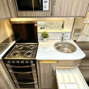 Ajonvakautusjärjestelmä, Alde, Erikoisvanteet, Erillisvuoteet, Eristetty harmaavesisäiliö, Ilmastointi: Automaattinen, Jääkaappi, Kaasu-uuni, Kasetti WC, Kasettiverhot, Kattoluukku, Lattialämmitys, Liesi, Lämminvesiboileri, Mikroaaltouuni, Nestekiertolämmitys, Pakastelokero, Pesuallas, Radio, Sähköpatruuna, TV-antenni tai lautasantenni, Tukijalat, Lattialämmitys (nestekierto), kwh-mittari, jenkkijääkaappi, liesituuletin, kaasun ulosotto, sähkön ulosotto, televisio, Asuinosan hyttysovi/verho, ATC (AL-KO vaunun vakautusjärjestelmä), Pesuhuoneen pyyhekuivain, Keskuspölyimuri
